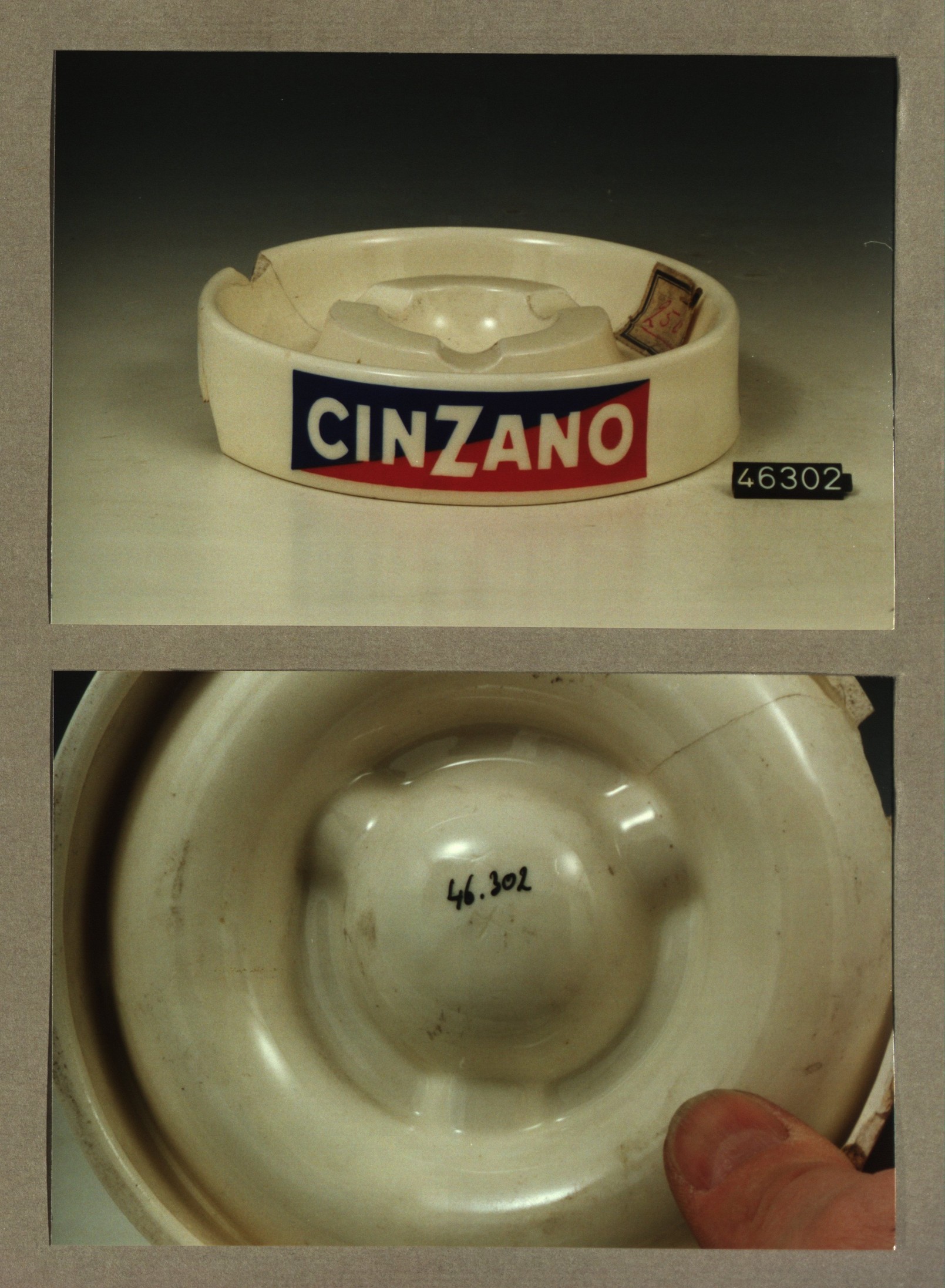 Asbak, model P rond met decor Cinzano