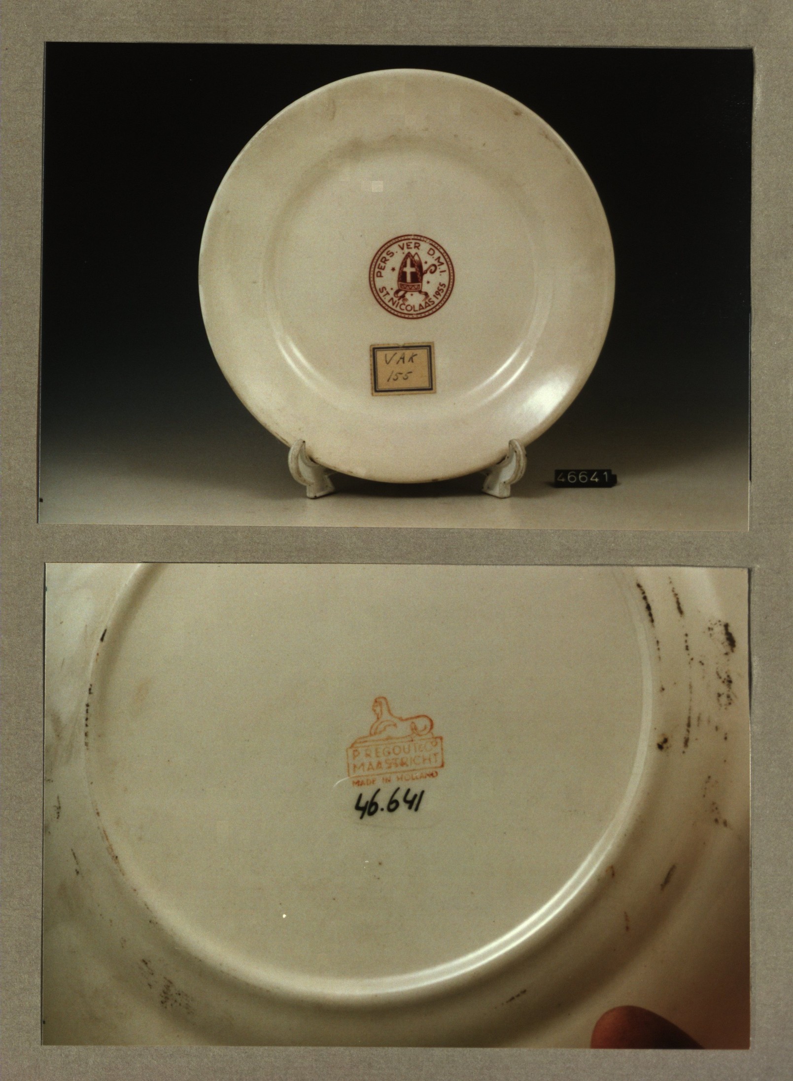 Plat bord met decor Pers.ver.DMI St.Nicolaas 1955