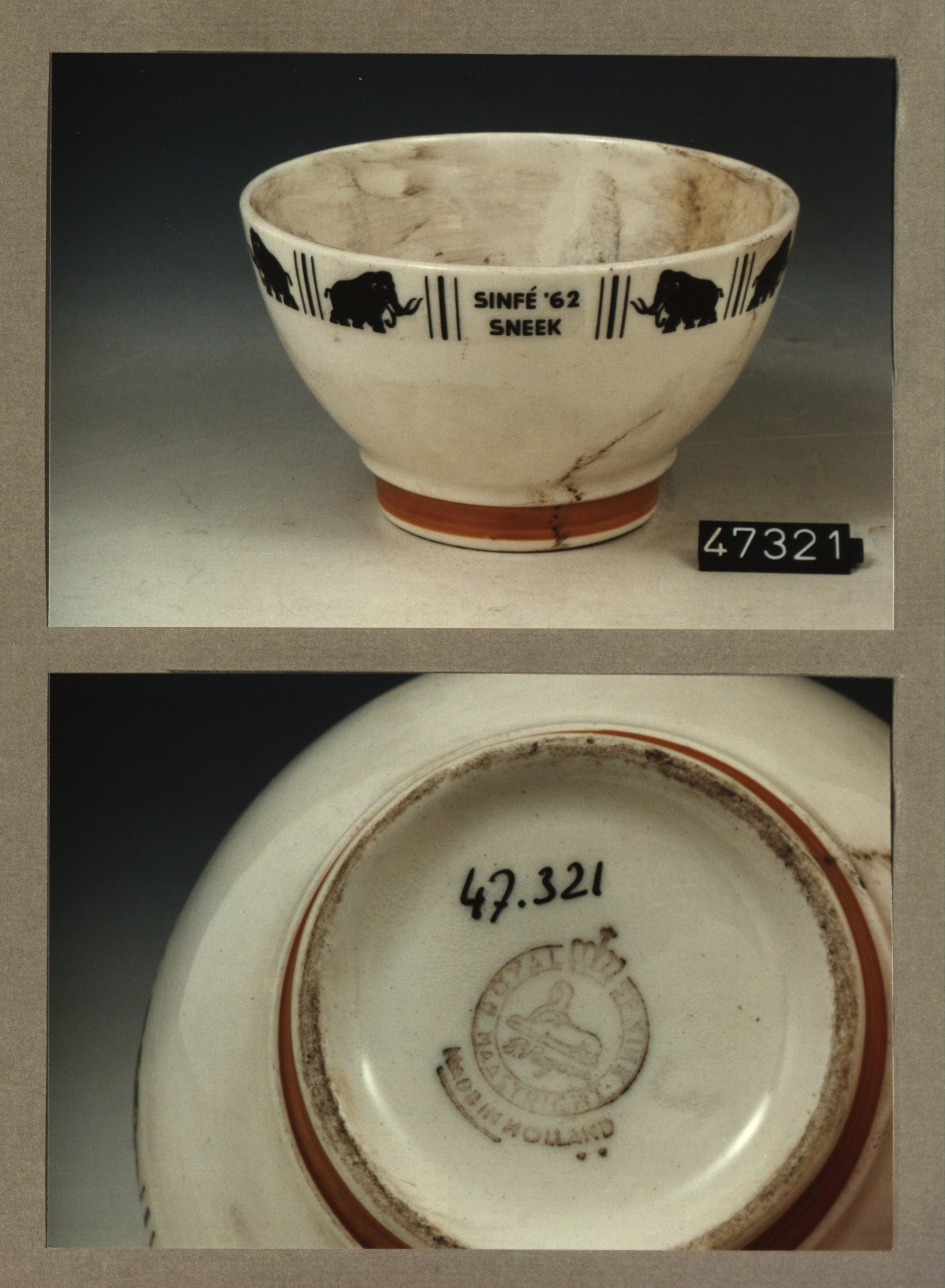 Kom met opschrift met decor Sinfe'62 Sneek