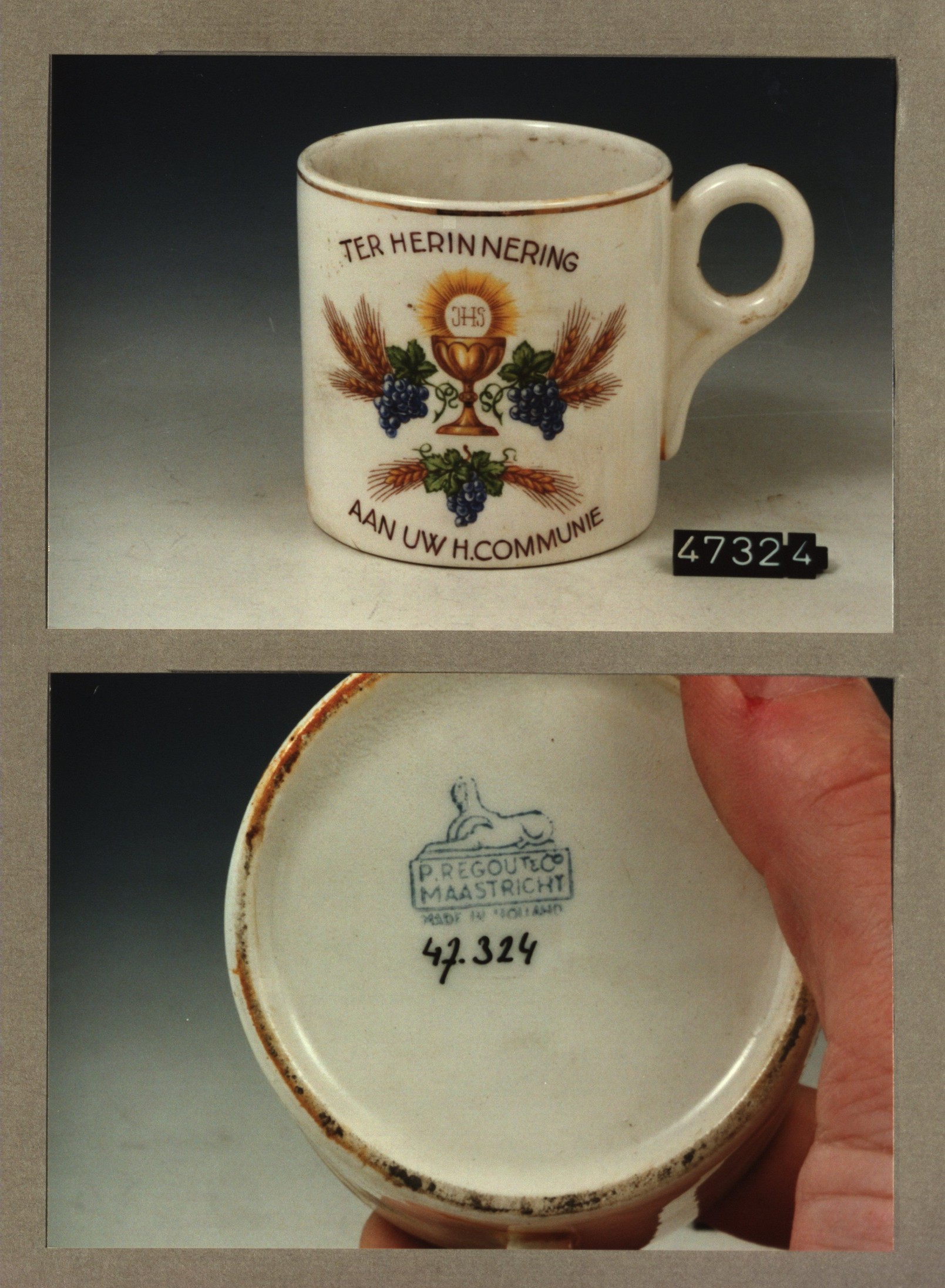 Beker met oor met decor Ter herinnering aan uw H.Com...