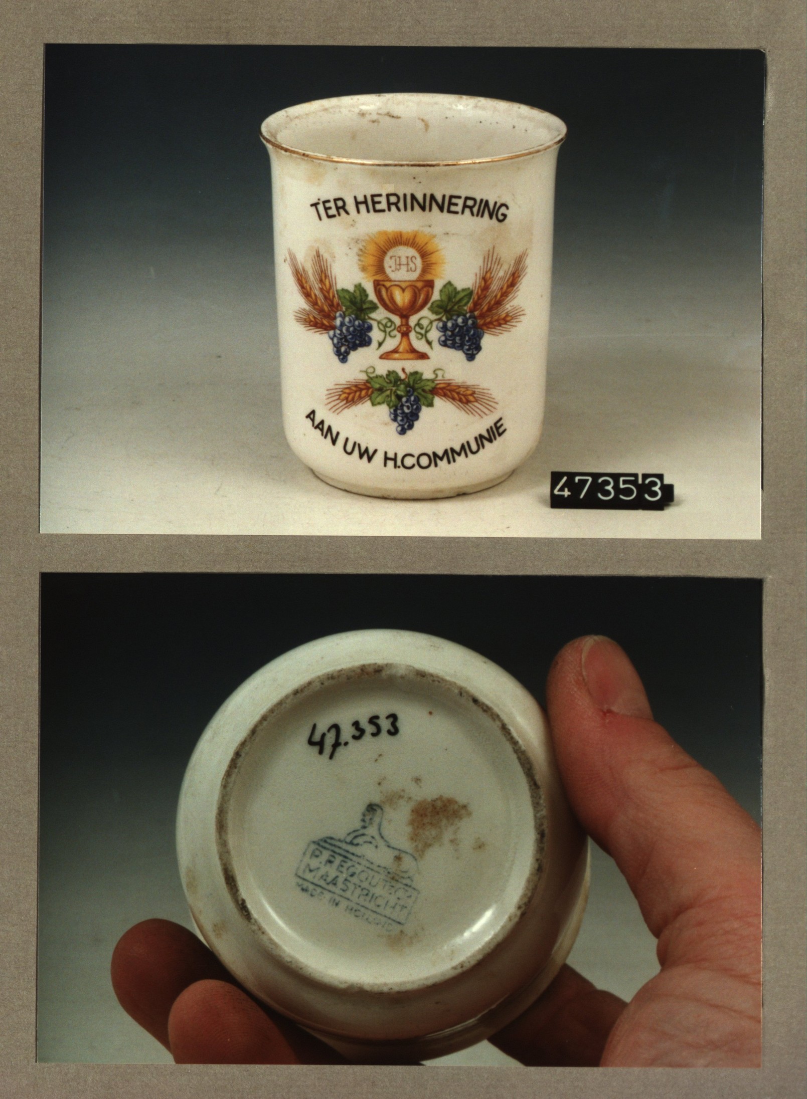 Beker met opschrift, model Jeker met decor Ter herin...