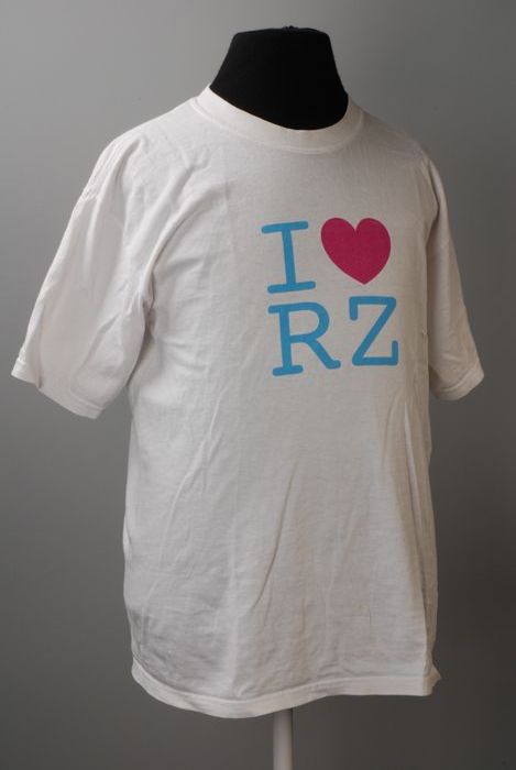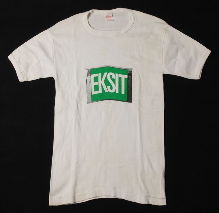 Wit t-shirt met opdruk in rode en zwarte letters "I ...