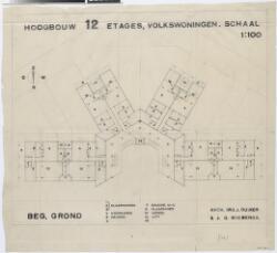 Doorsneden en Plattegrond 12 Etages Hoogbouw Volkswo...