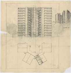 Aanzicht en Plattegrond Hoogbouw Volkswoningen