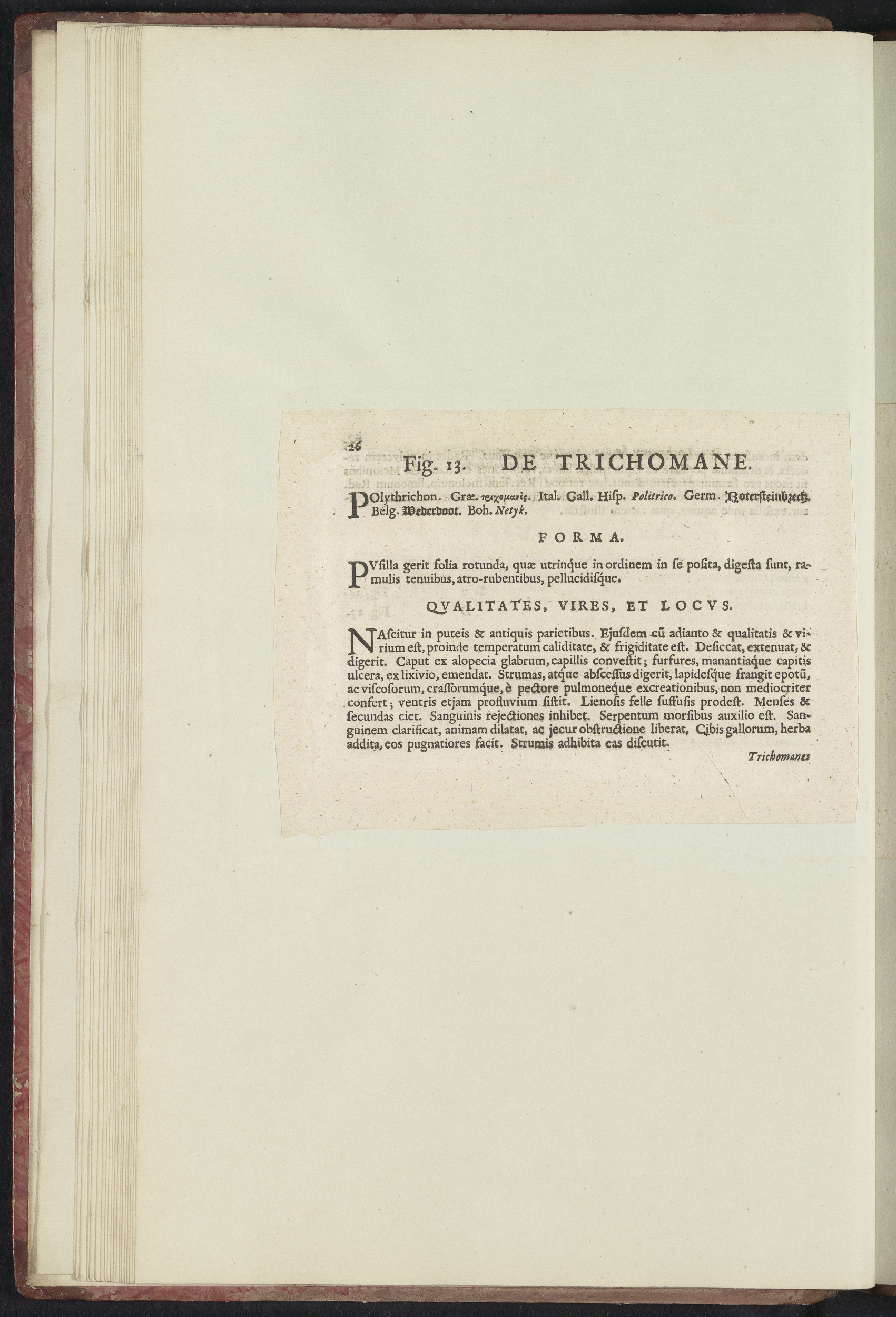 Fig. 13 'De Trichomane' in De Boodts herbarium van 1640