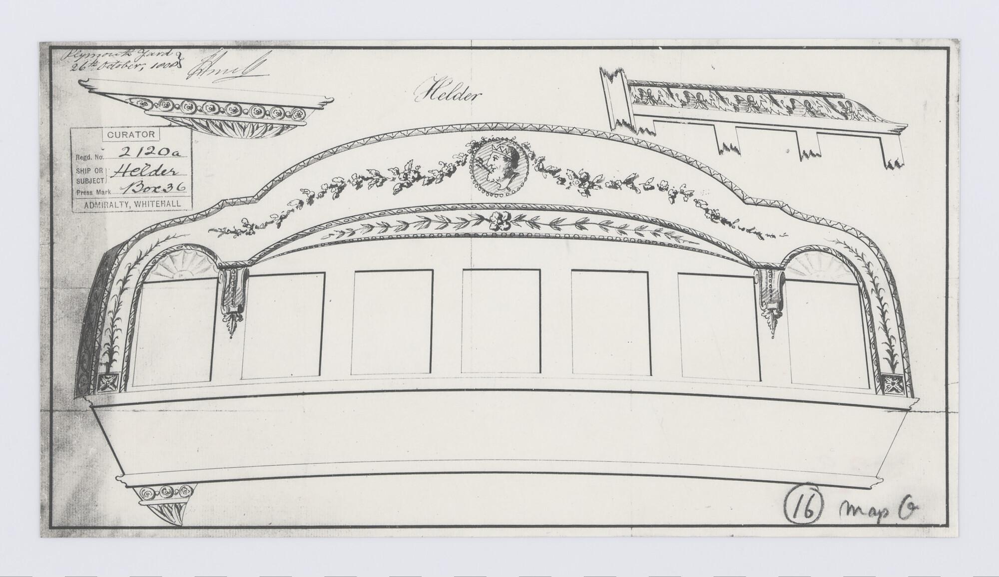 Oorlogsschip Braak, achterdek ("quarterdeck") and vo...