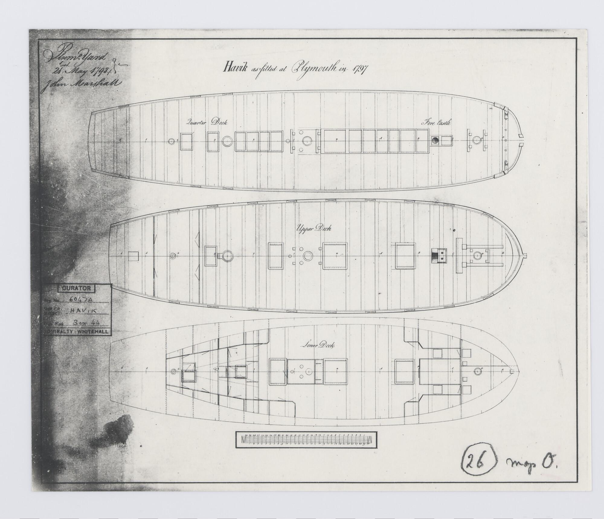 Benedendek ("lowerdeck") en platforms oorlogsschip P...