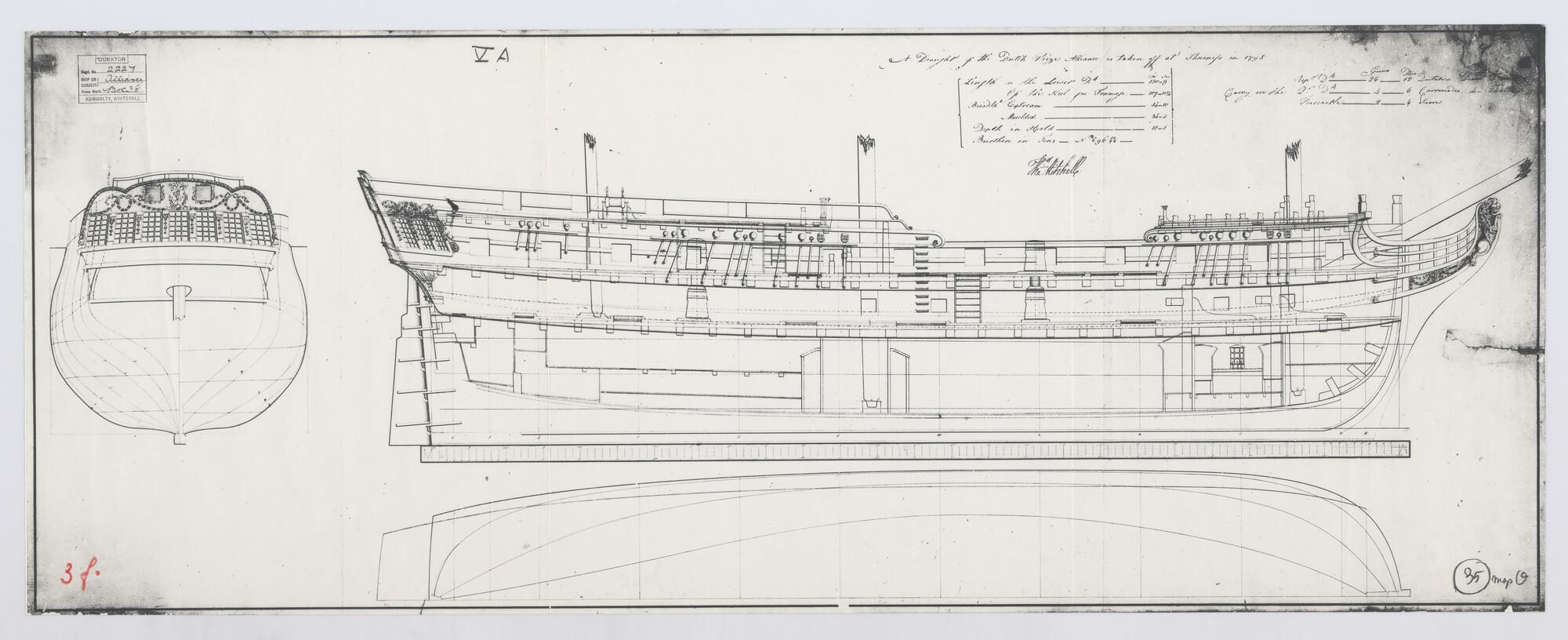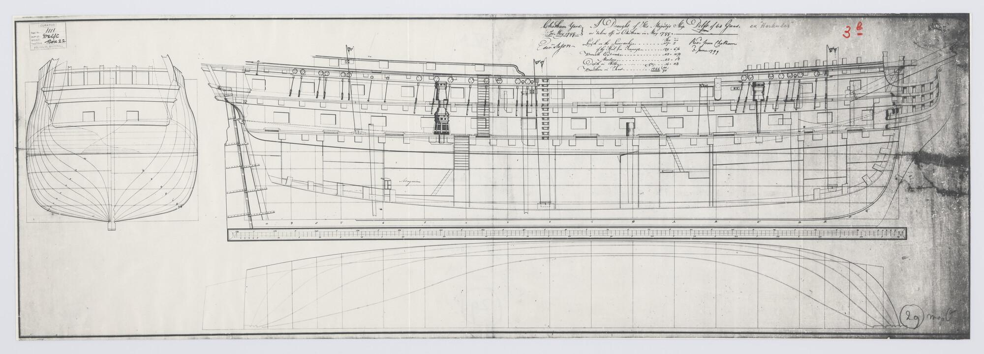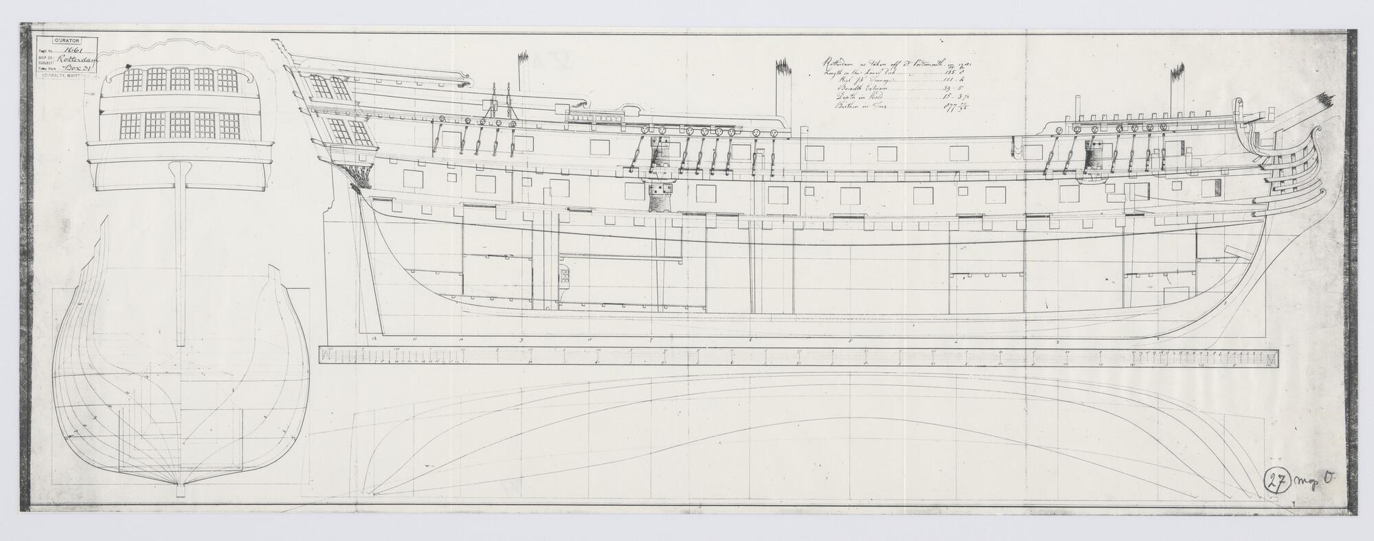 Oorlogsschip Heldin, 28 stukken: zijaanzicht, vertic...