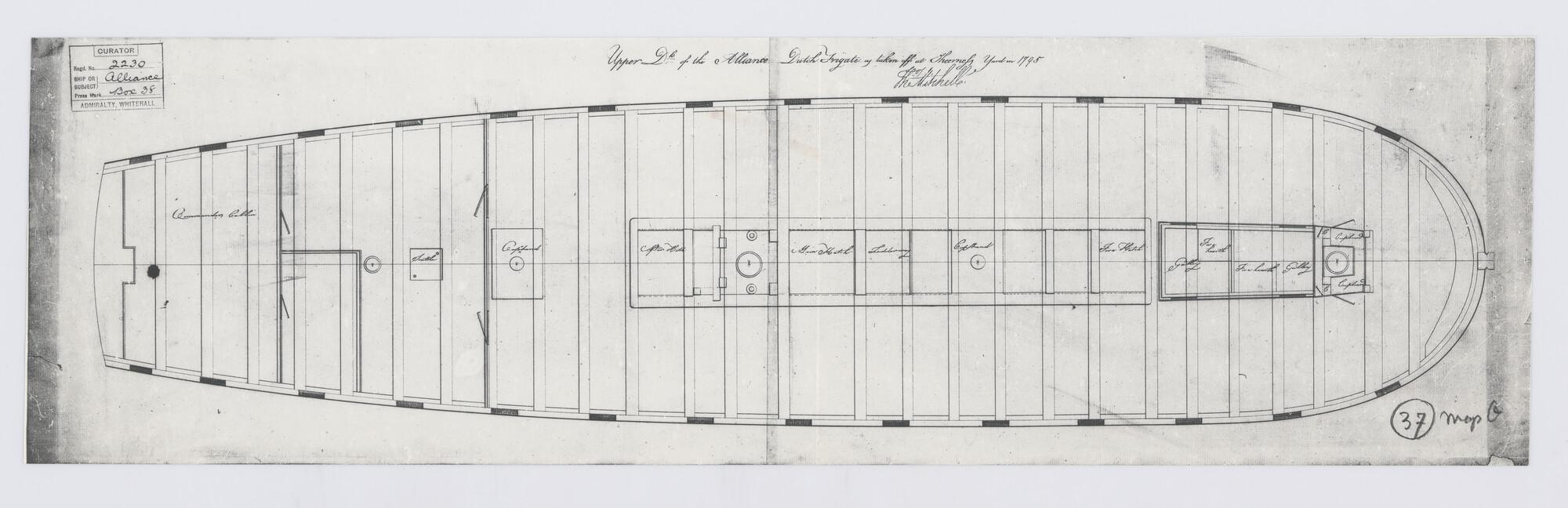 Achterdek ("quarterdeck"), bovendek ("upperdeck") en...