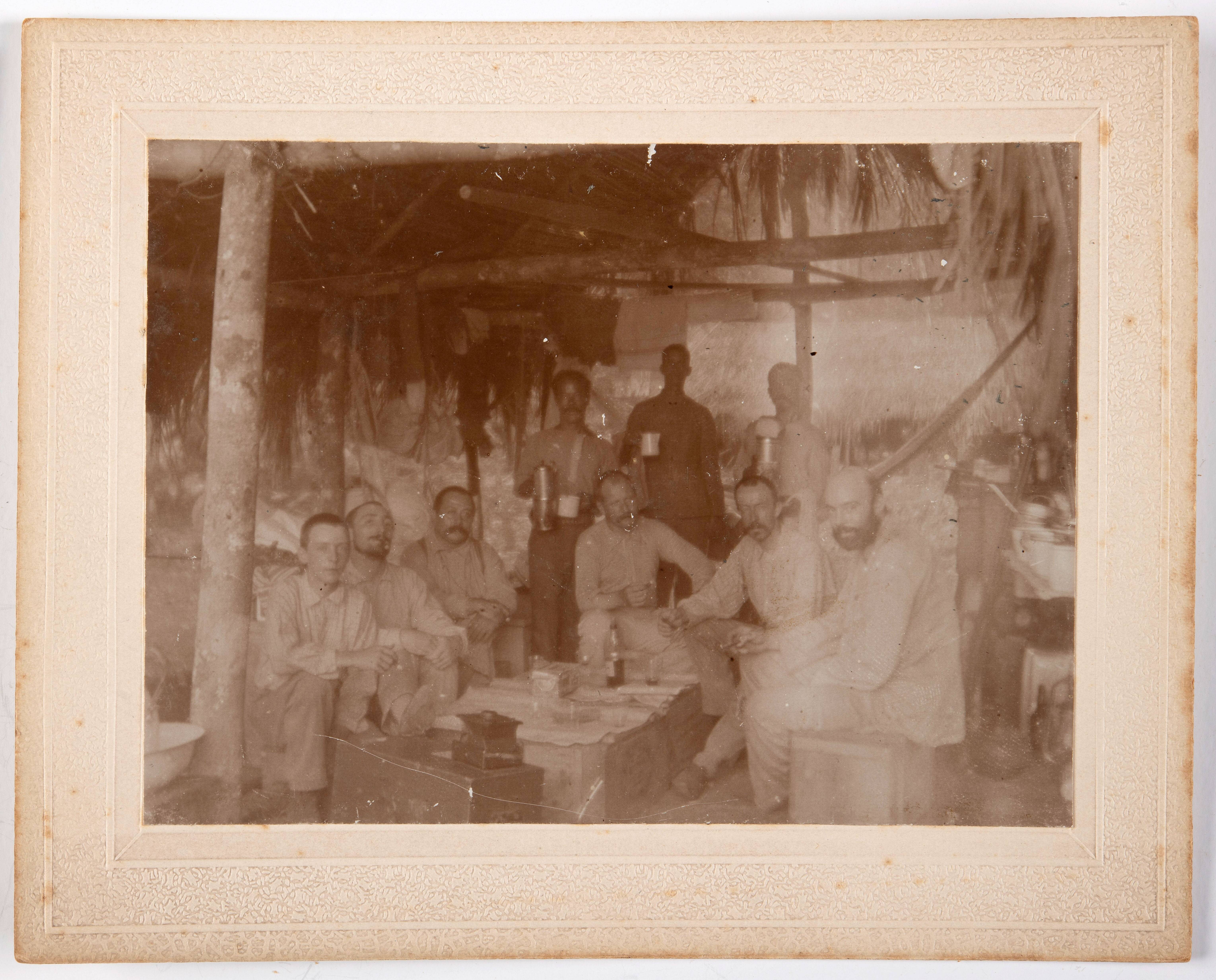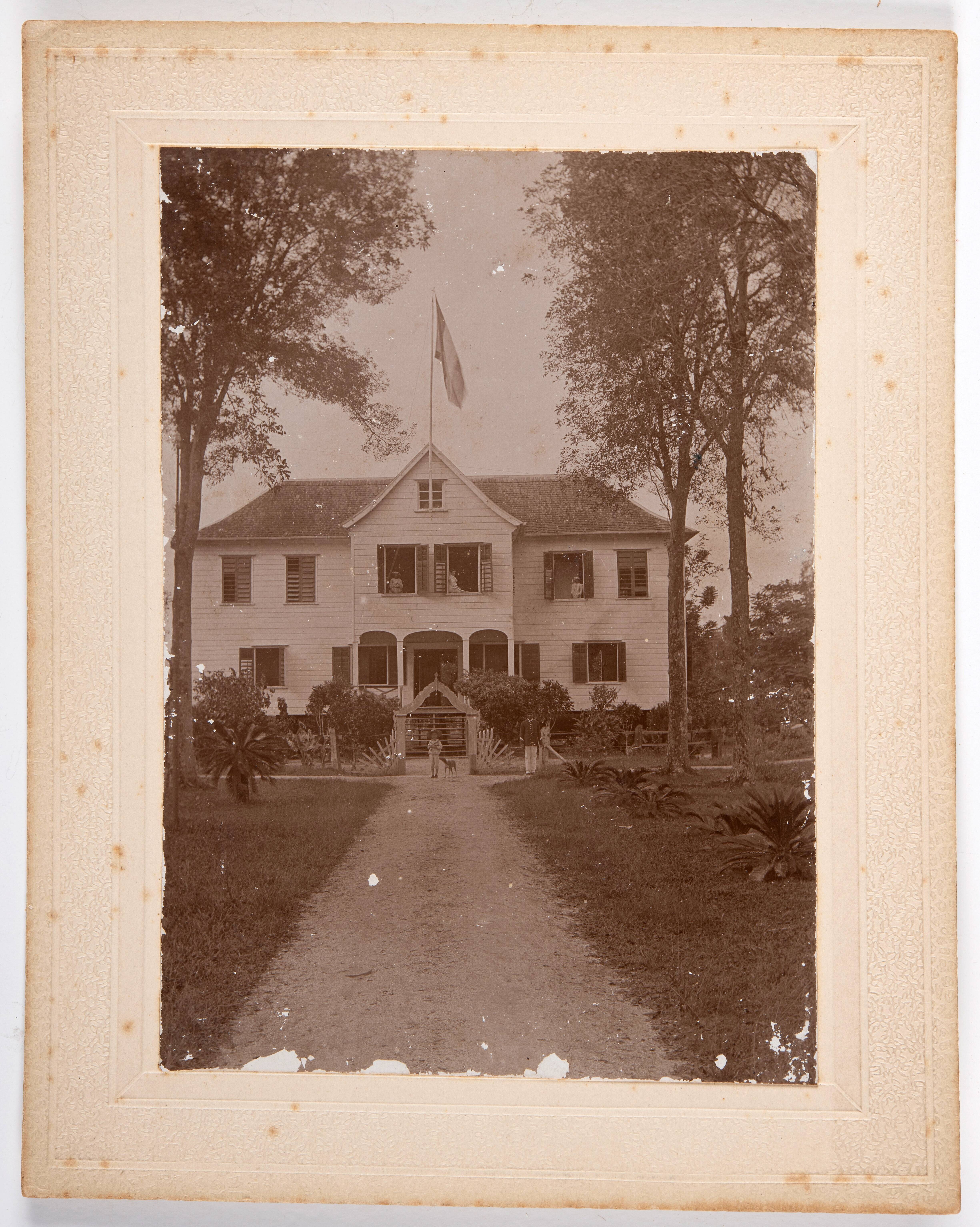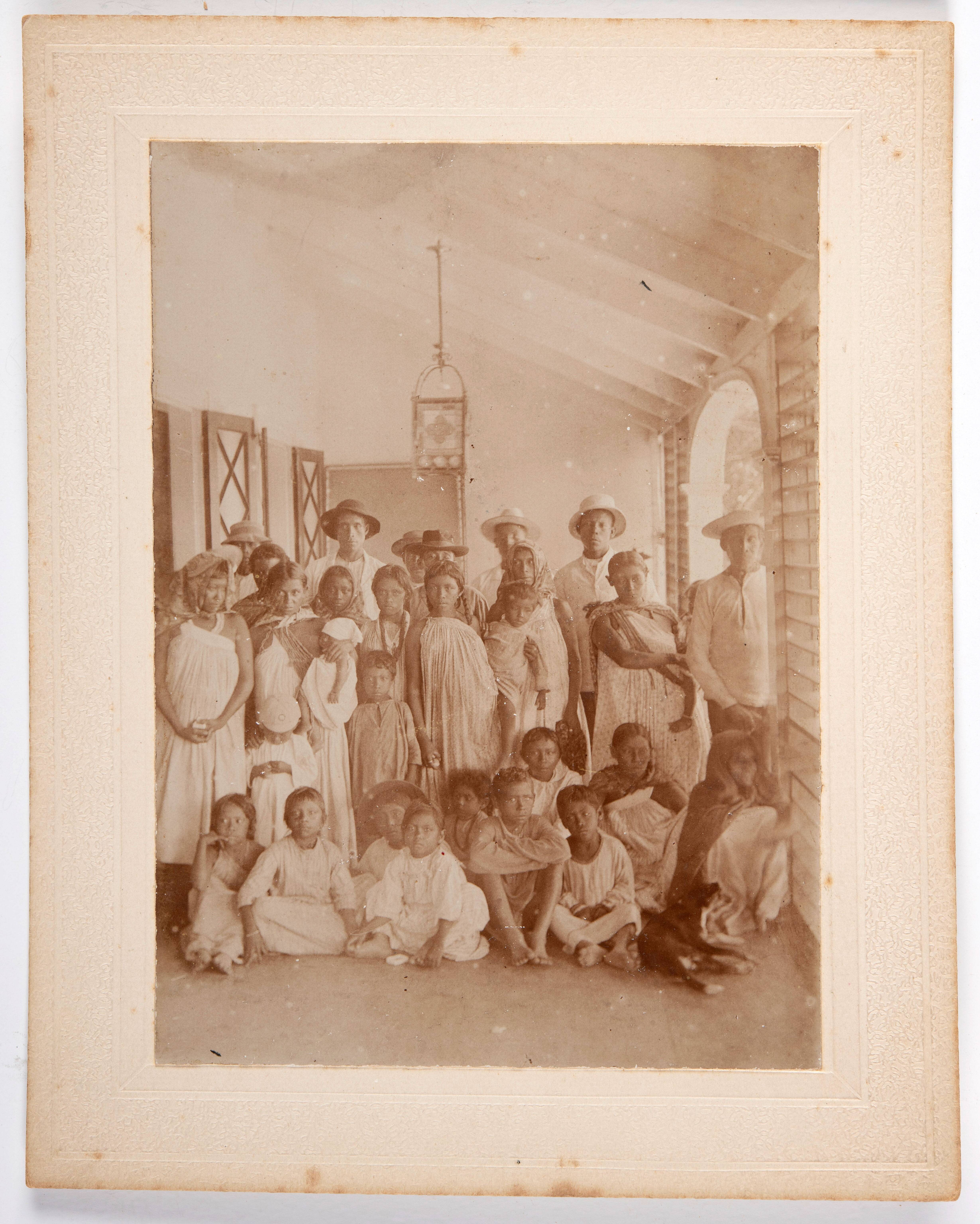 Groepsfoto van inheemsen op het balkon van het commi...