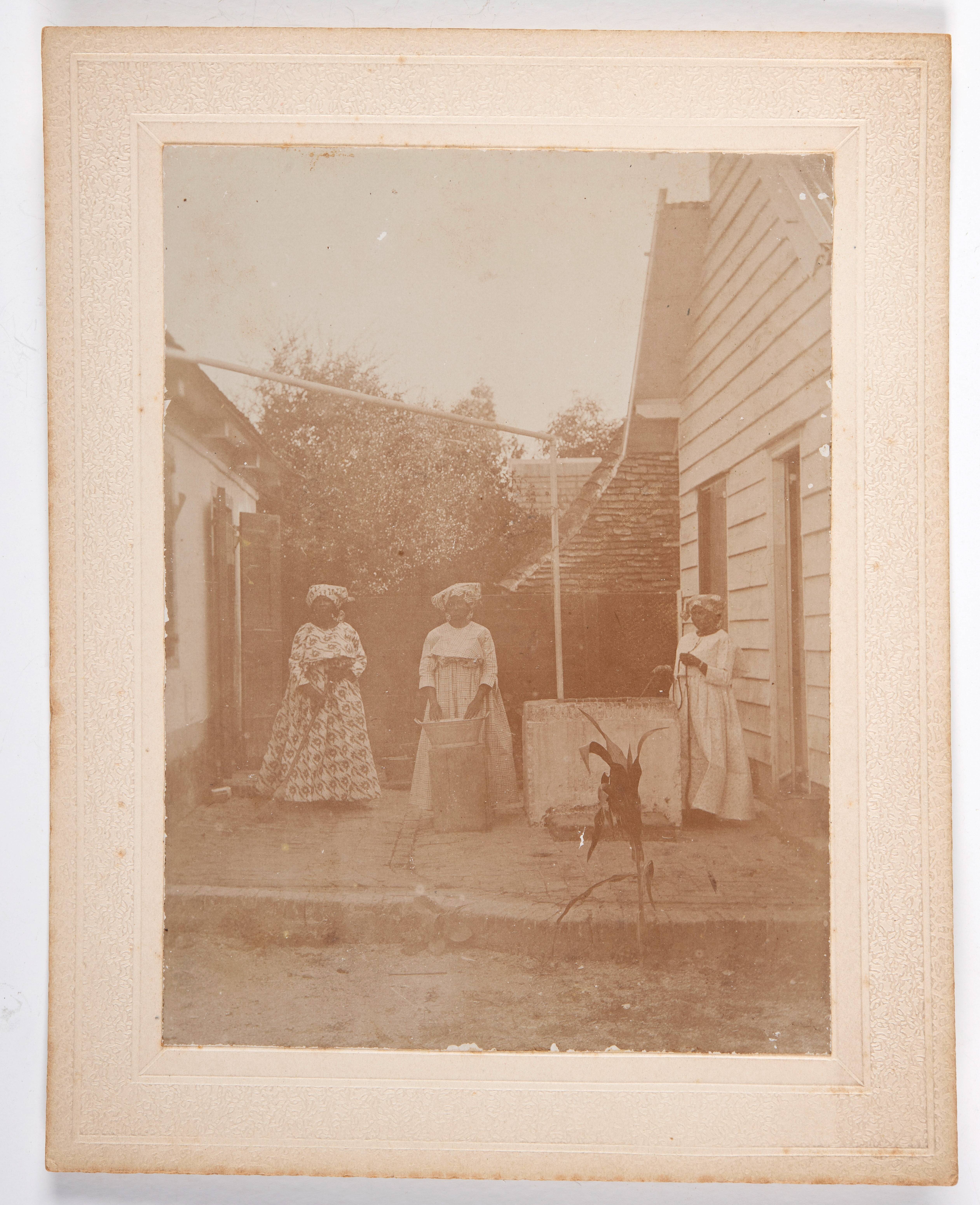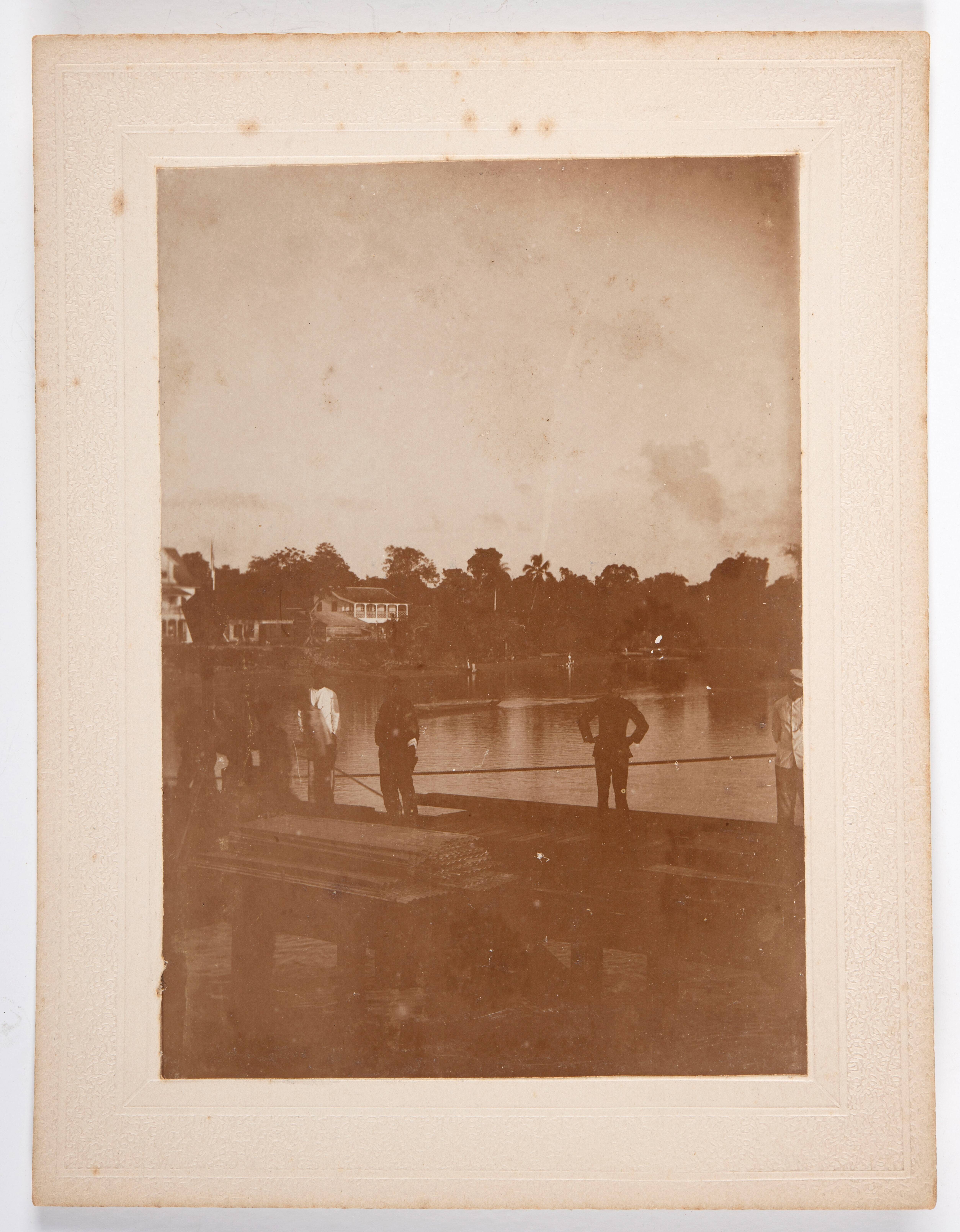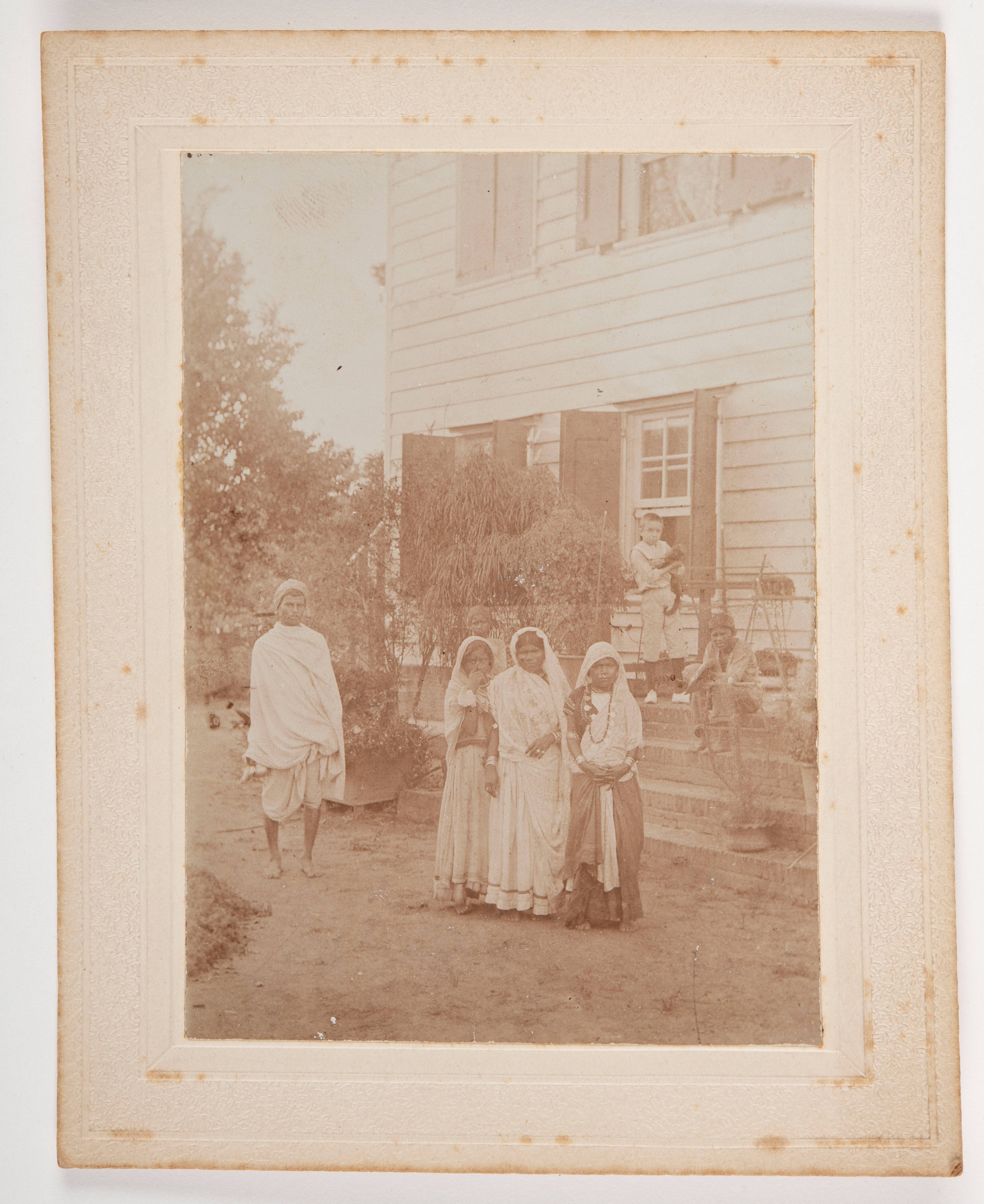 Groepsfoto van inheemsen op het balkon van het commi...