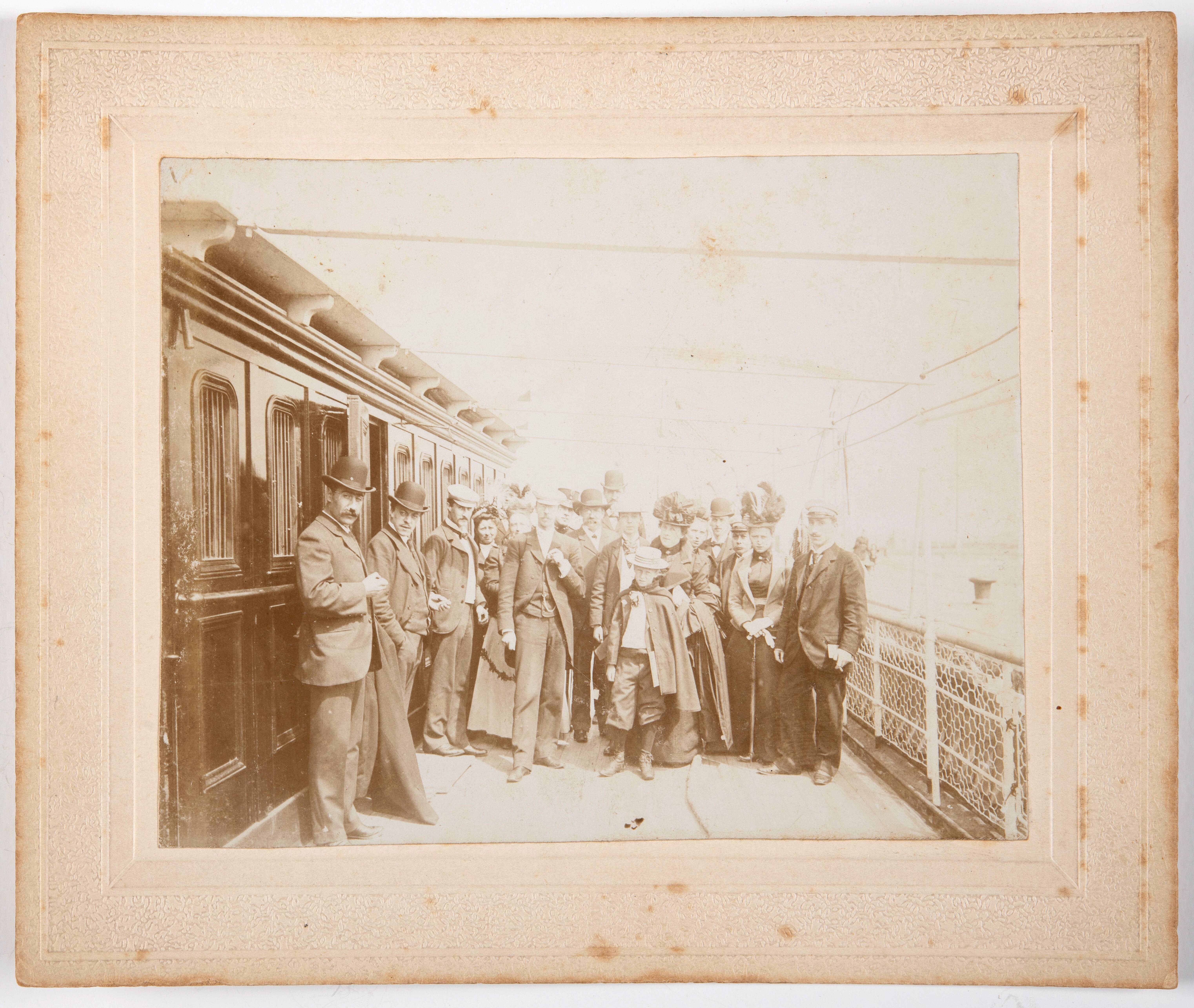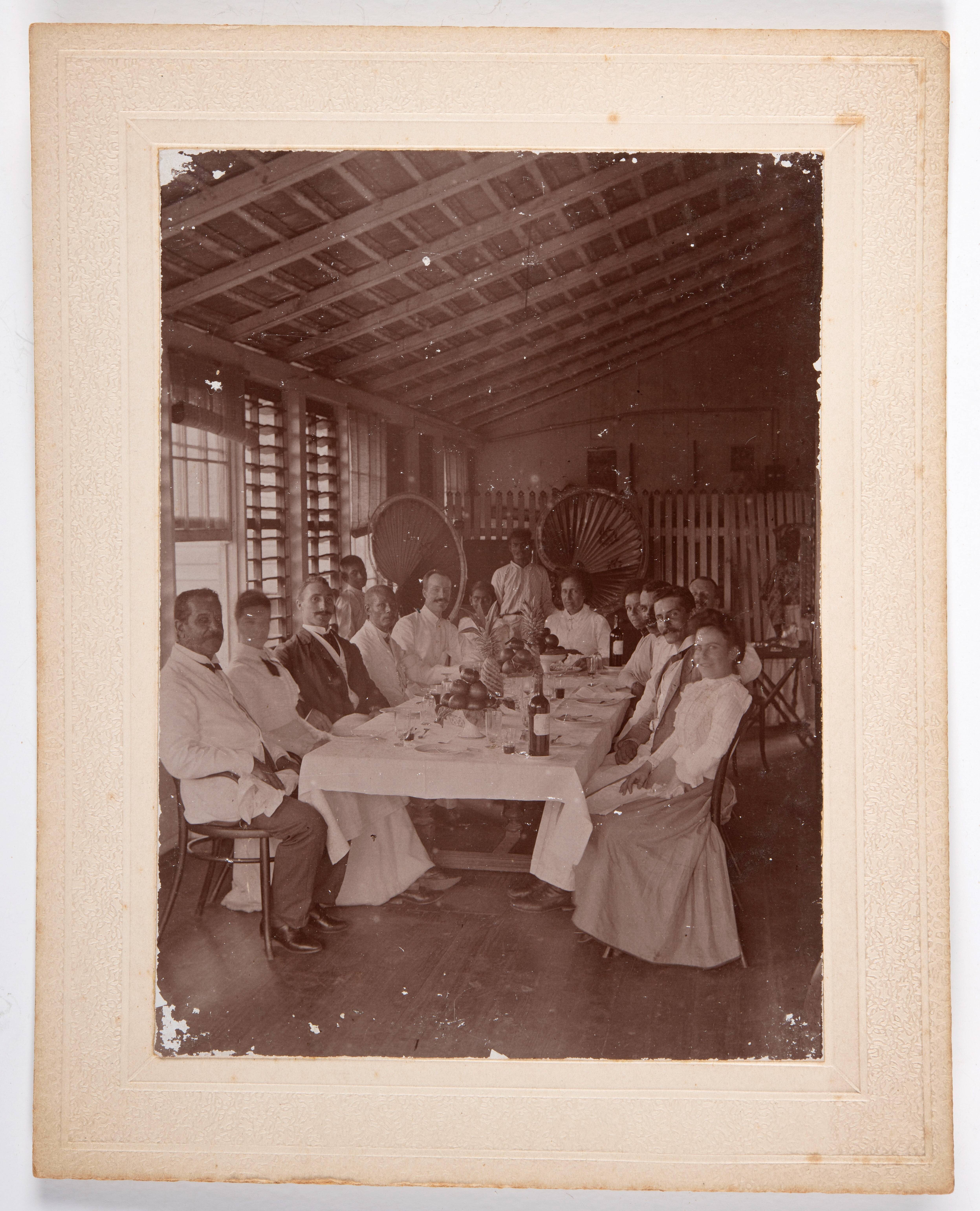 Groepsfoto van tafelgasten van de familie Green op p...
