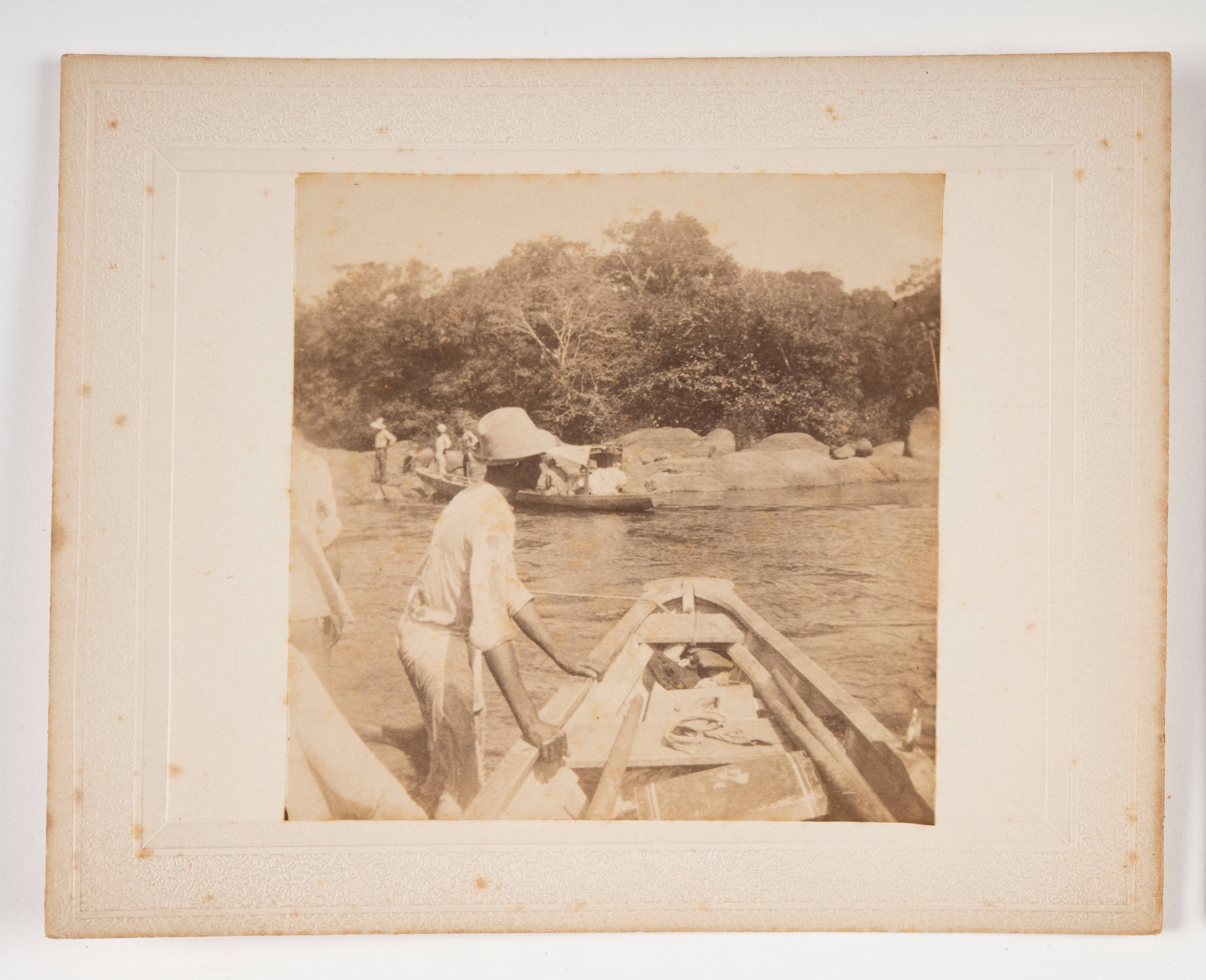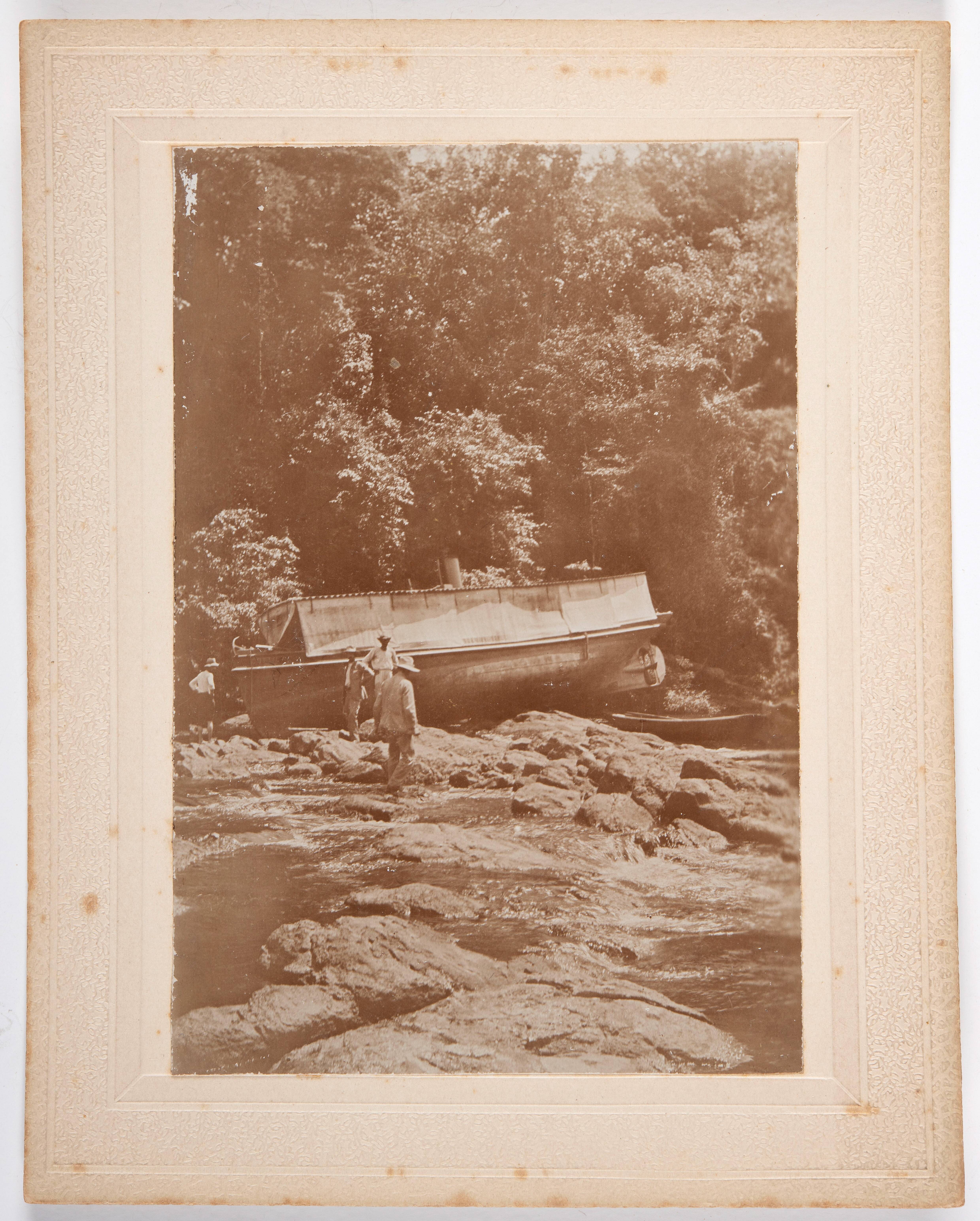 Het doorhalen van boten bij de Blanche Marie val in ...