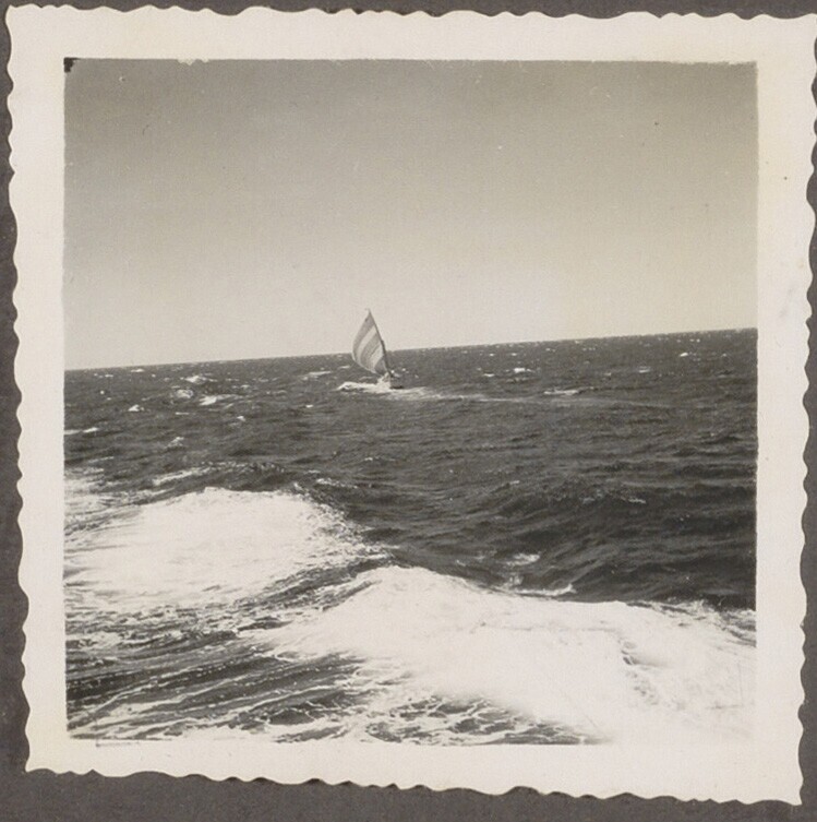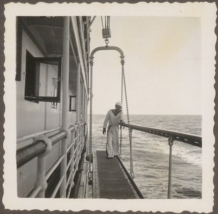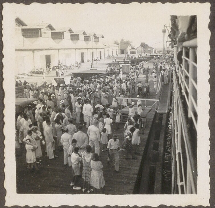 Aan de reling van de 'Treub' van de KPM