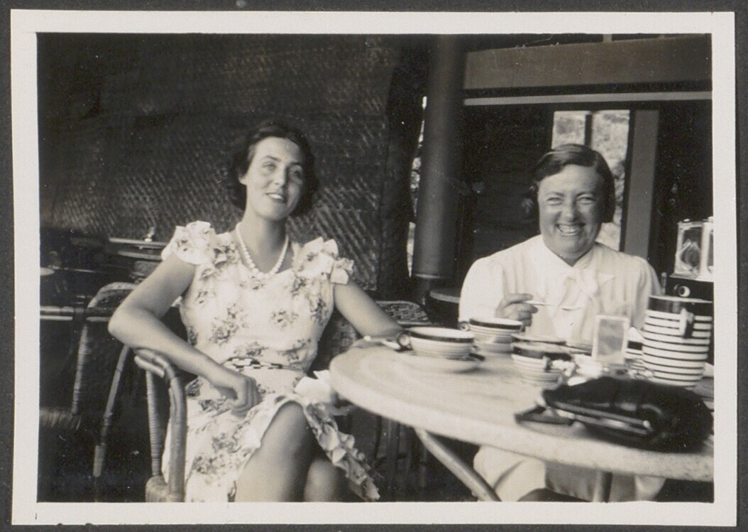 Twee vrouwen in een restaurant aan de kust van Hong ...