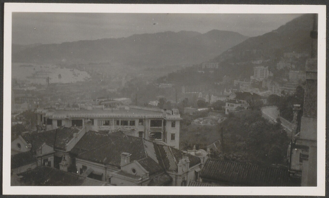 Uitzicht op de stad met baai op de achtergrond, Hong...
