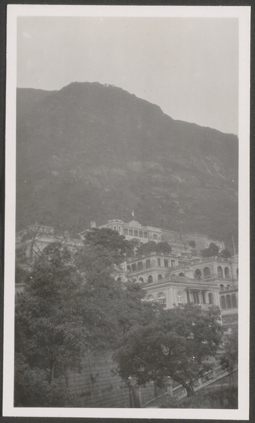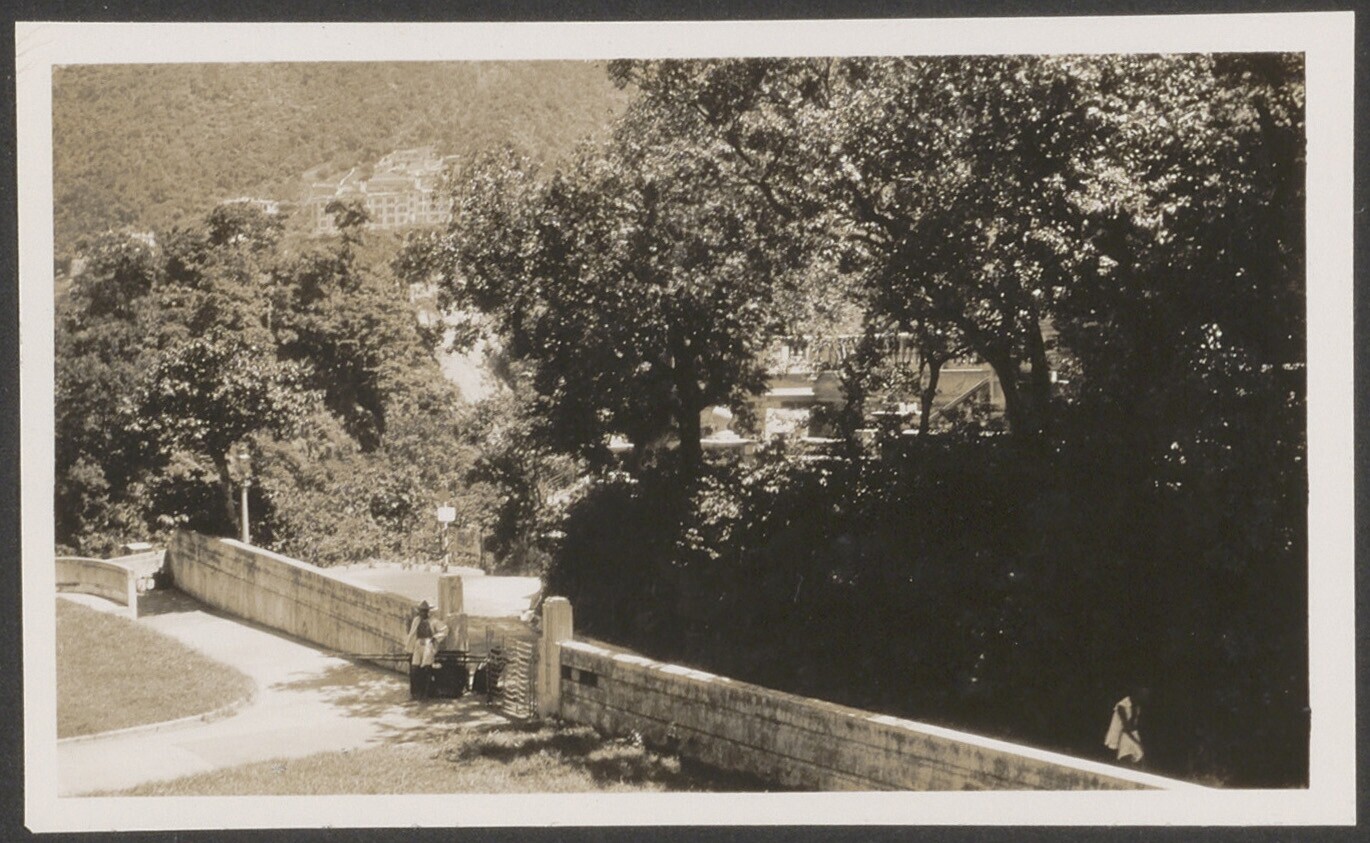 Zicht op helling met trappen en een gebouw, Hong Kong