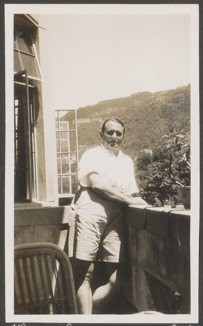 Man op balkon van een flat in Hong Kong