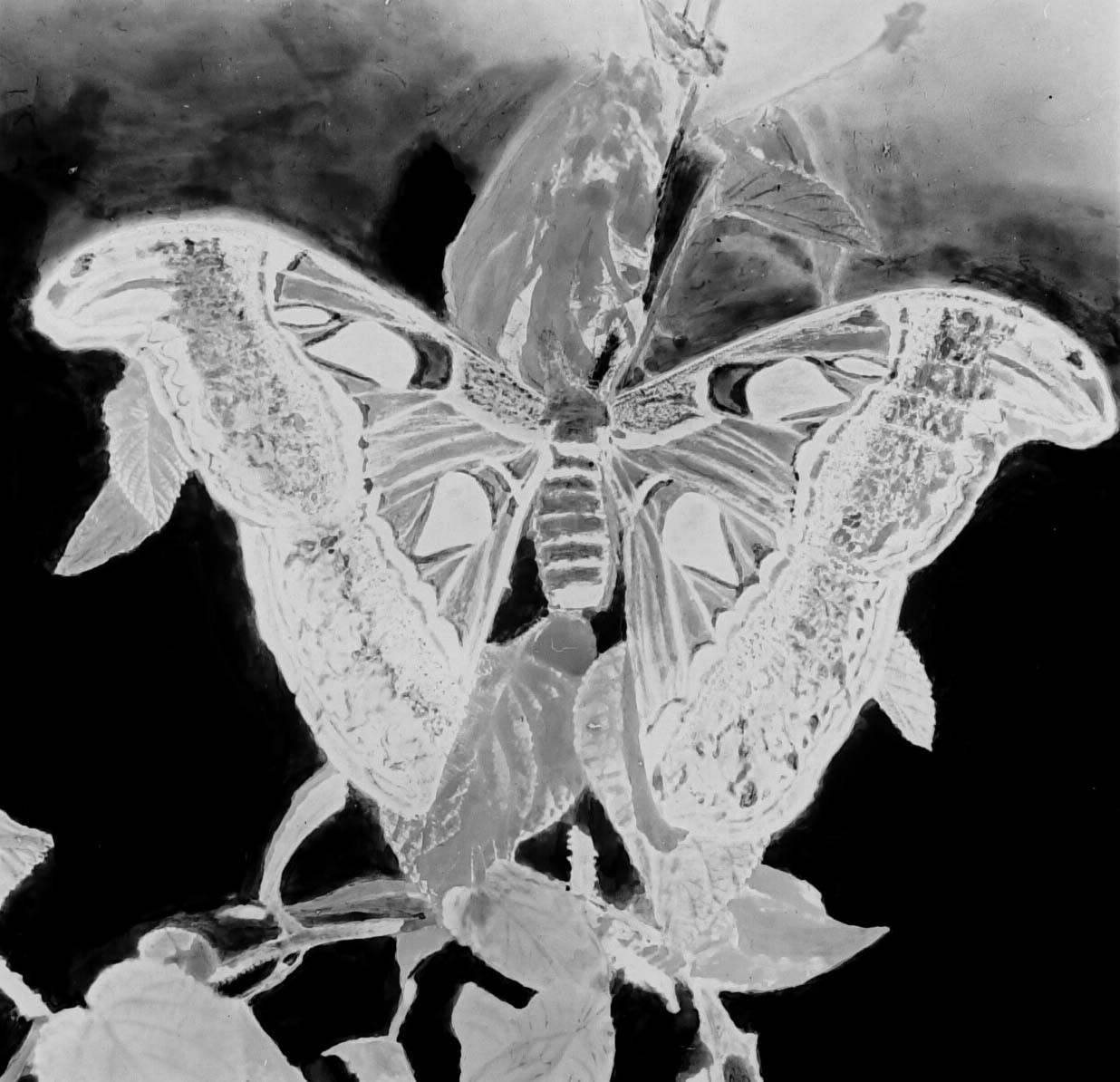 Atlasvlinder, pas uit de cocon, droogt zijn vleugels