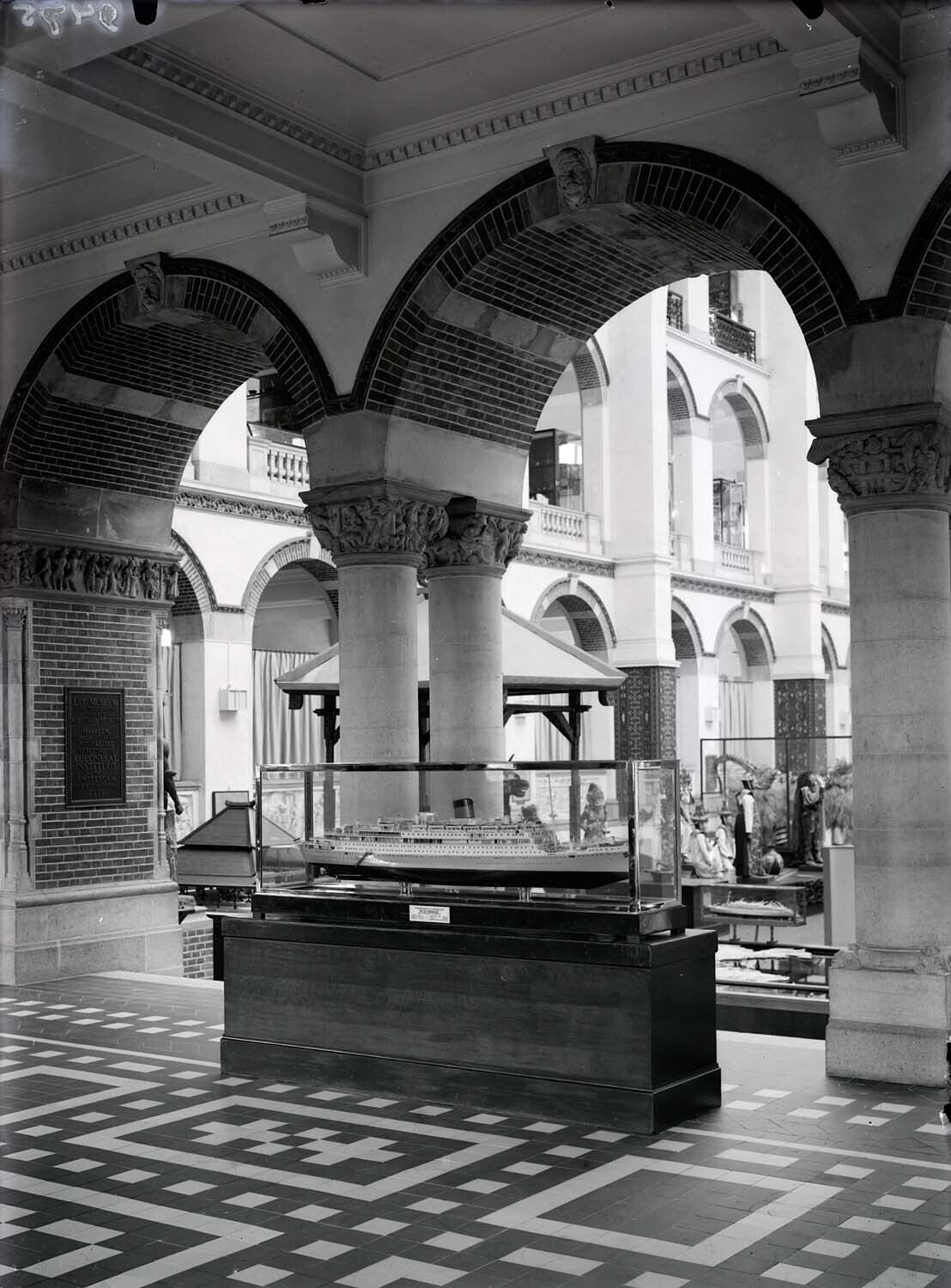 Model van de M.S. Oranje in de lichthal van het Kolo...
