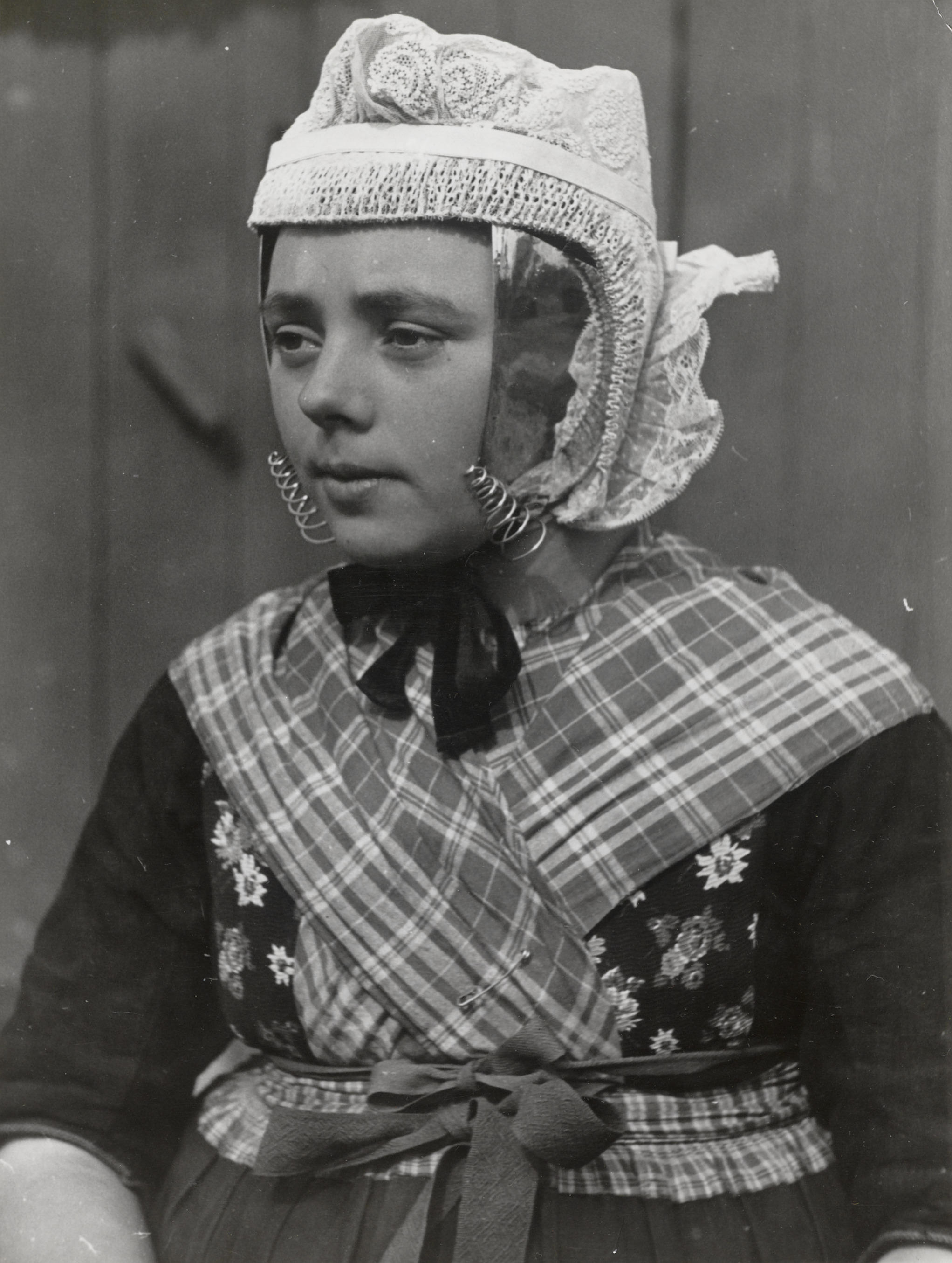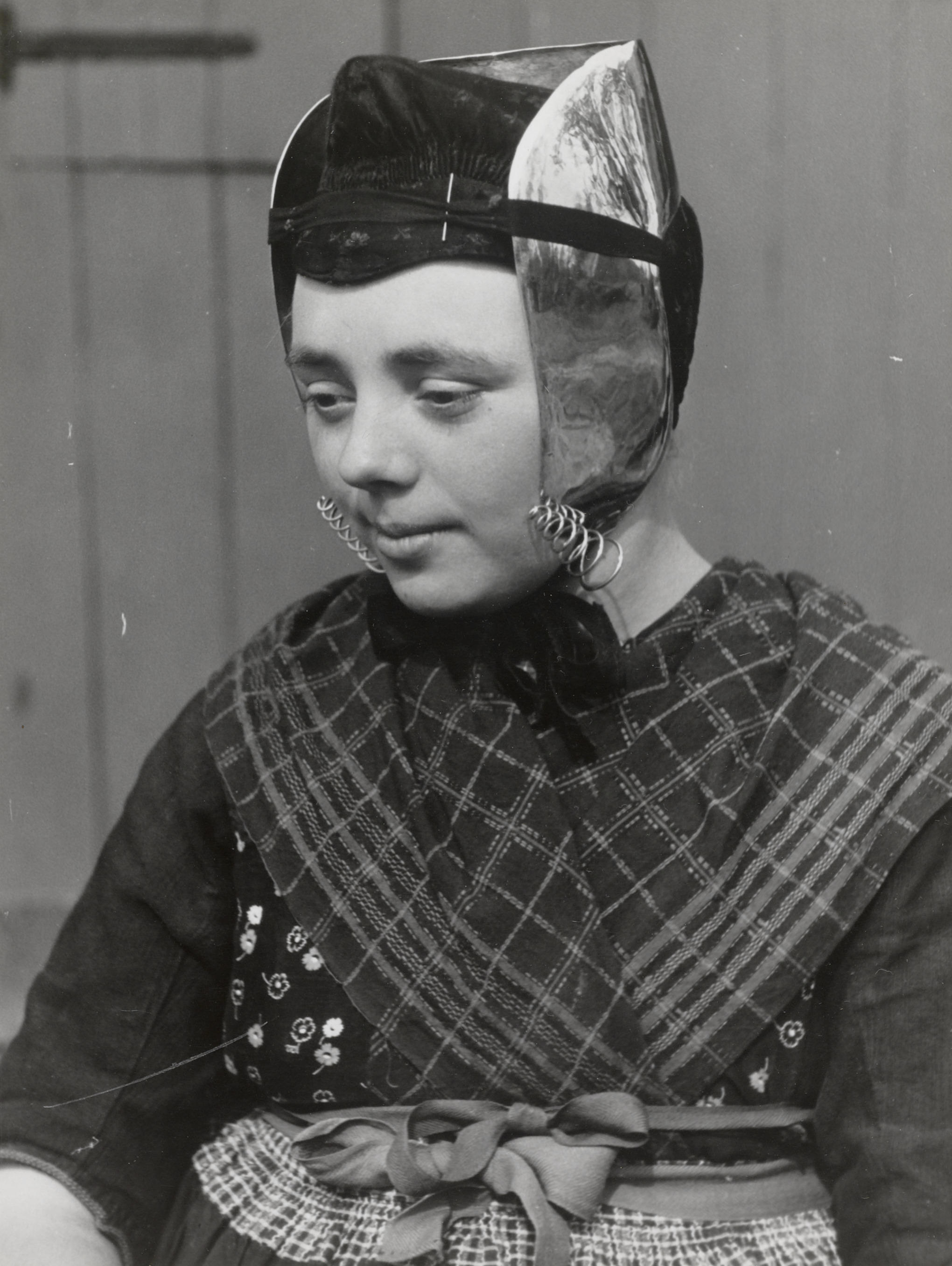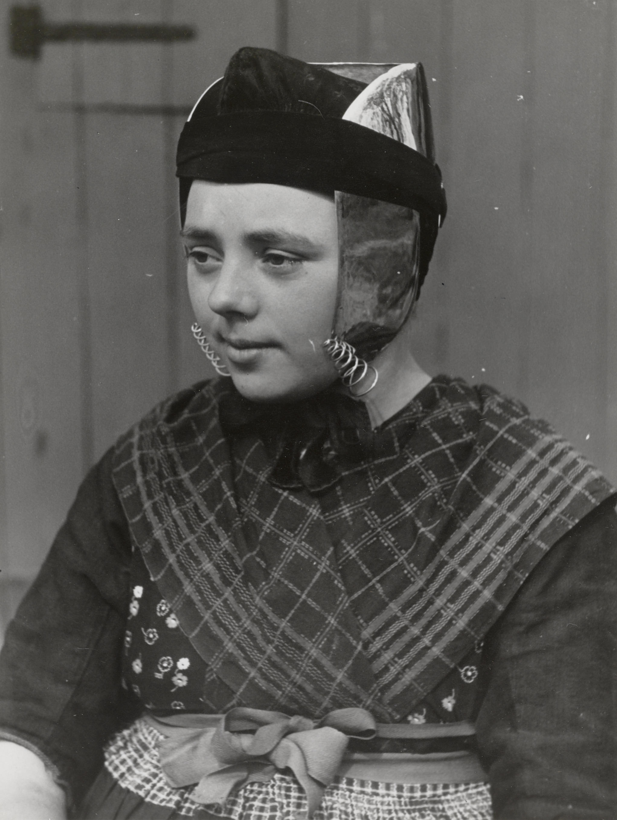 Beertje Veijer in streekdracht, Rouveen, 1944 (zwart...