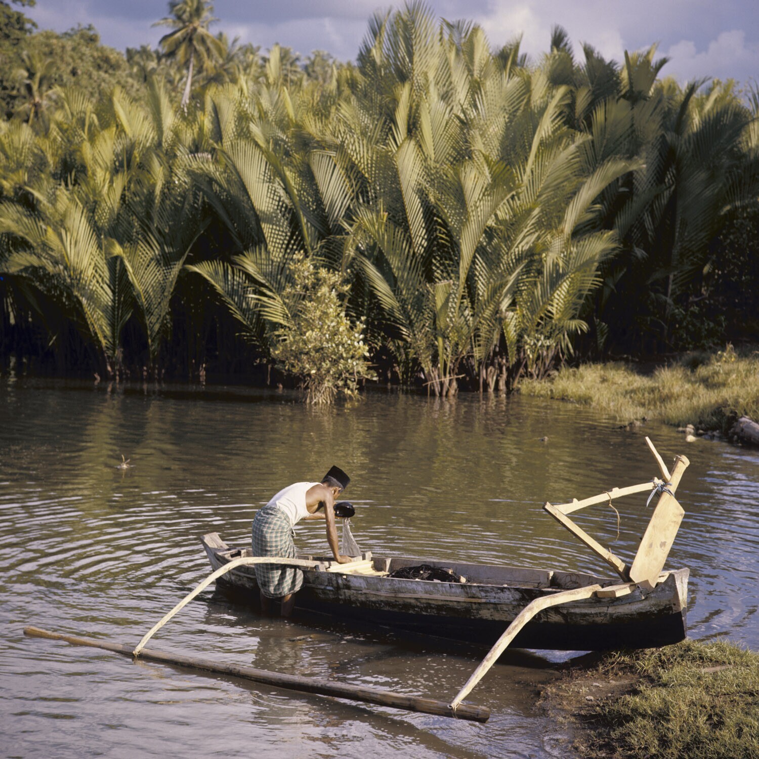 Visserbootje met op de achtergrond de nipapalmen, om...