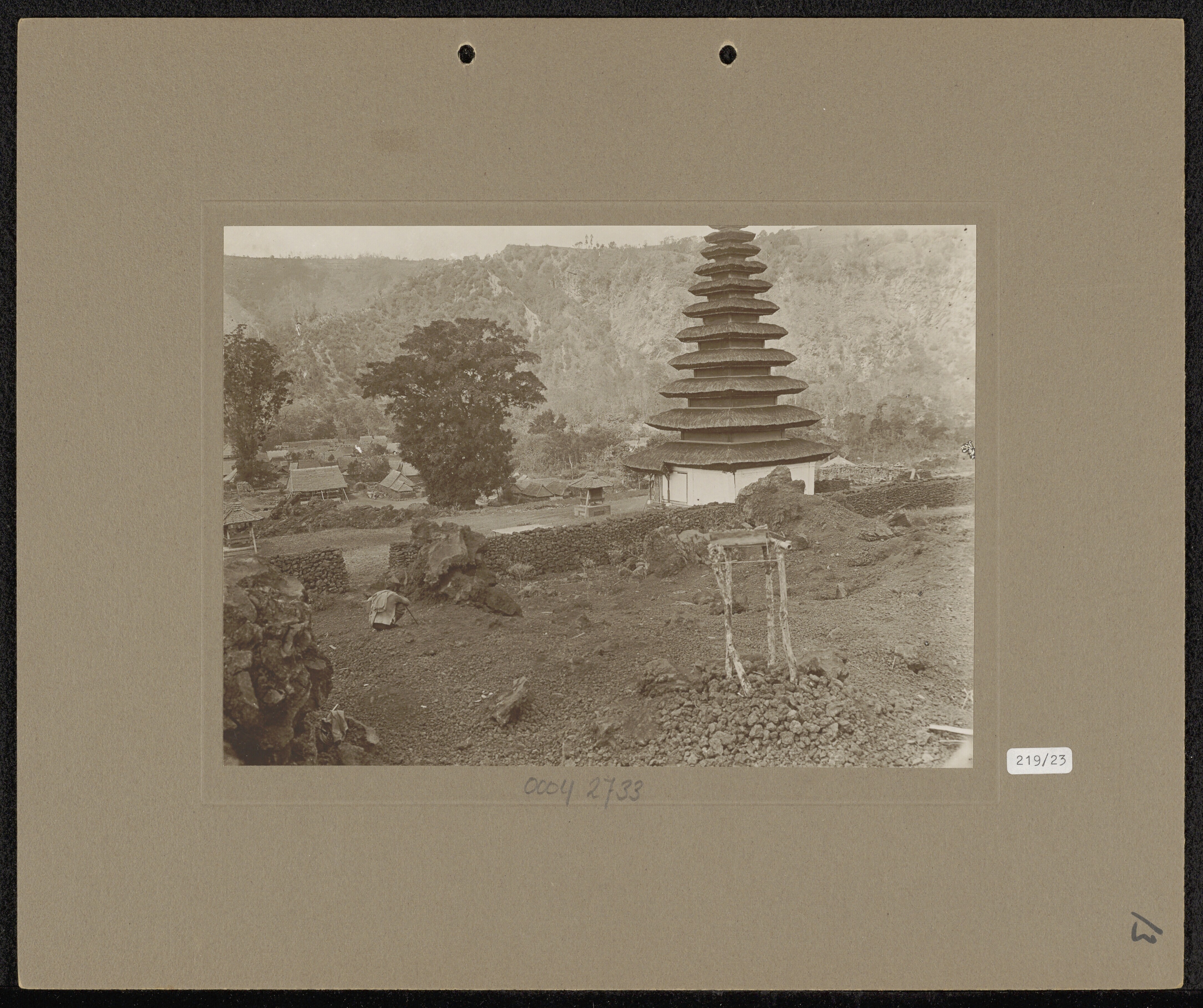 Kooien met vechthanen in Batoer, met een meru op de ...