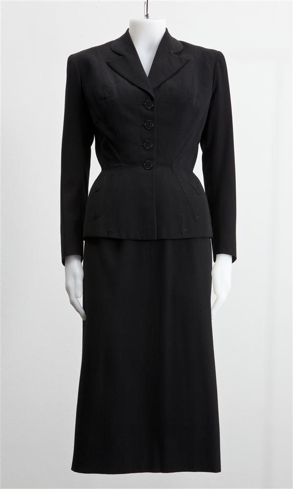 Mantelpak, van zwart wol bestaande uit getailleerd j...