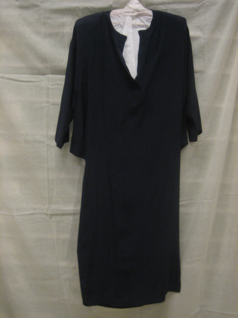 Jurk van donkerblauwe zijde met vleermuismouwen