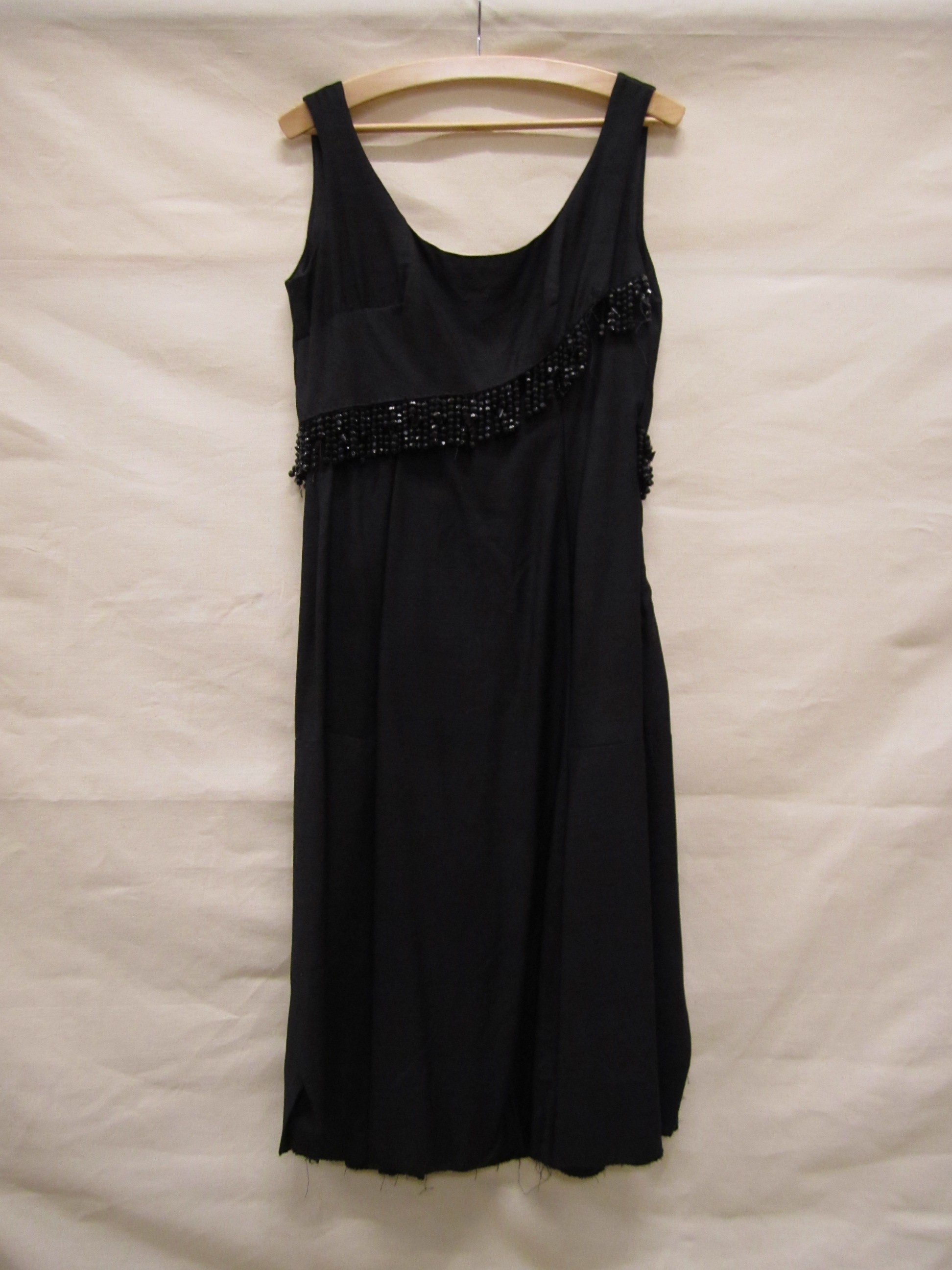 Jurk van zwart wollen tricot, met V-hals eindigend i...