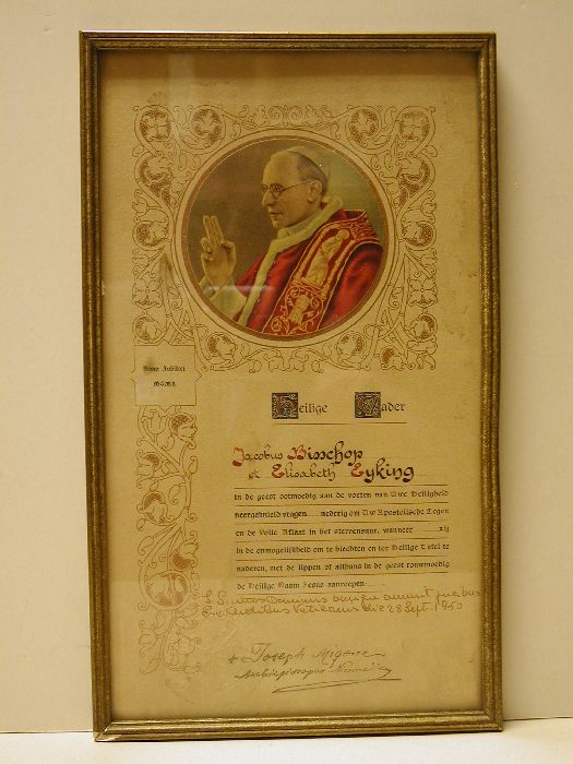 Oorkonde Jacobus Bisschop van Paus Pius XII 1950