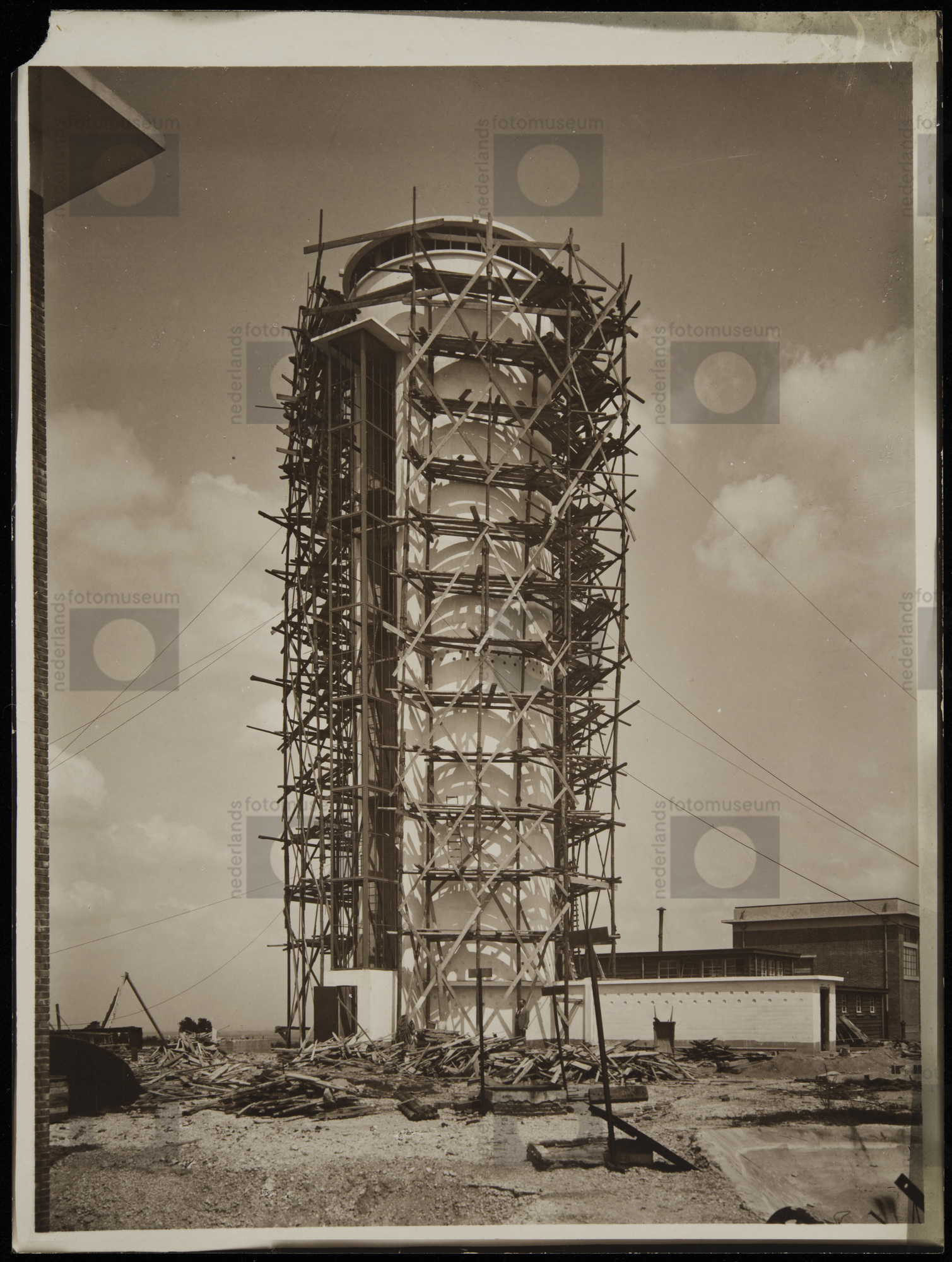 Luchtschacht van Staatsmijn Hendrik in aanbouw, Brun...
