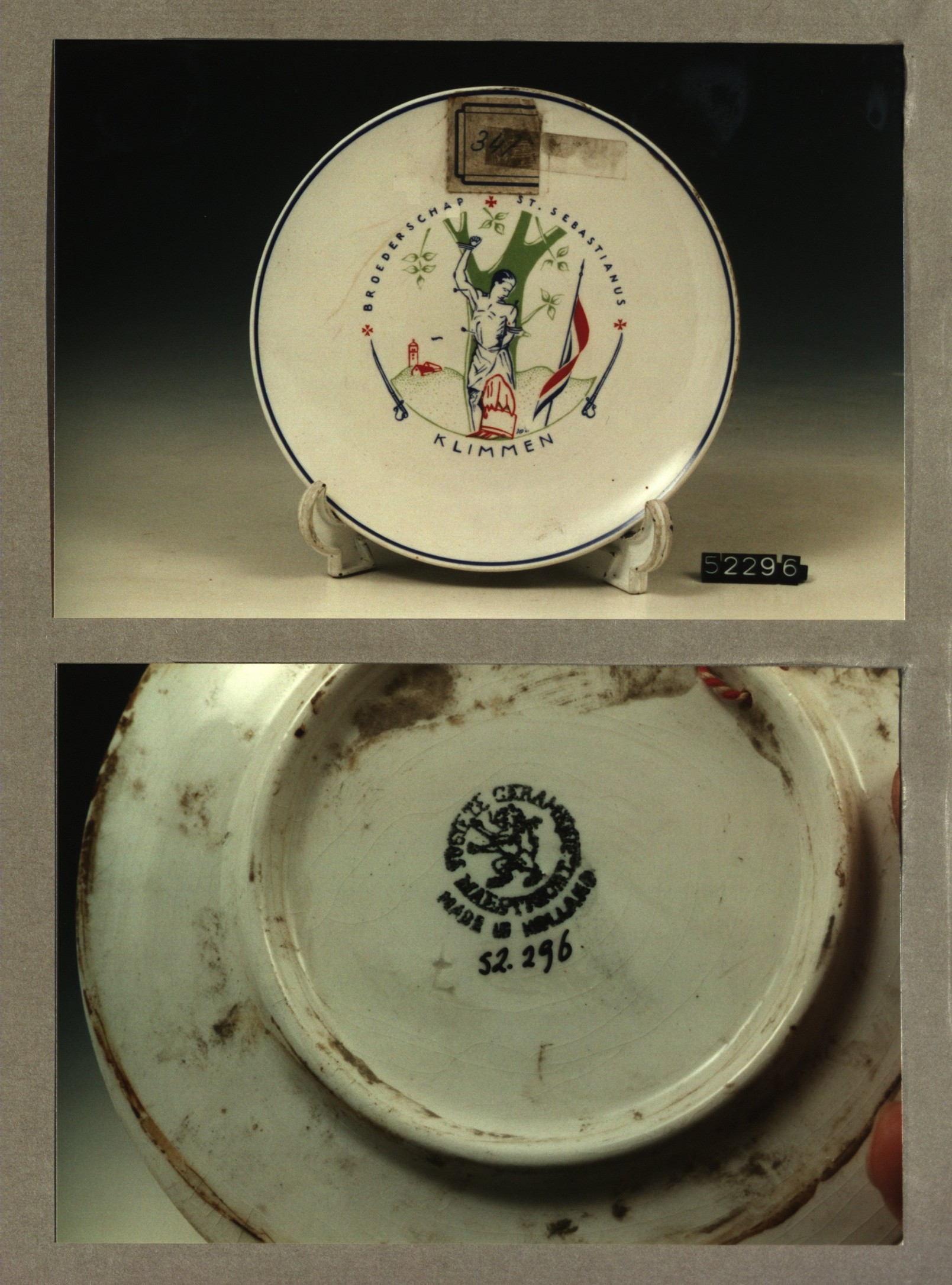 Wandbord met decor Broederschap St.Sebastianus Klimmen