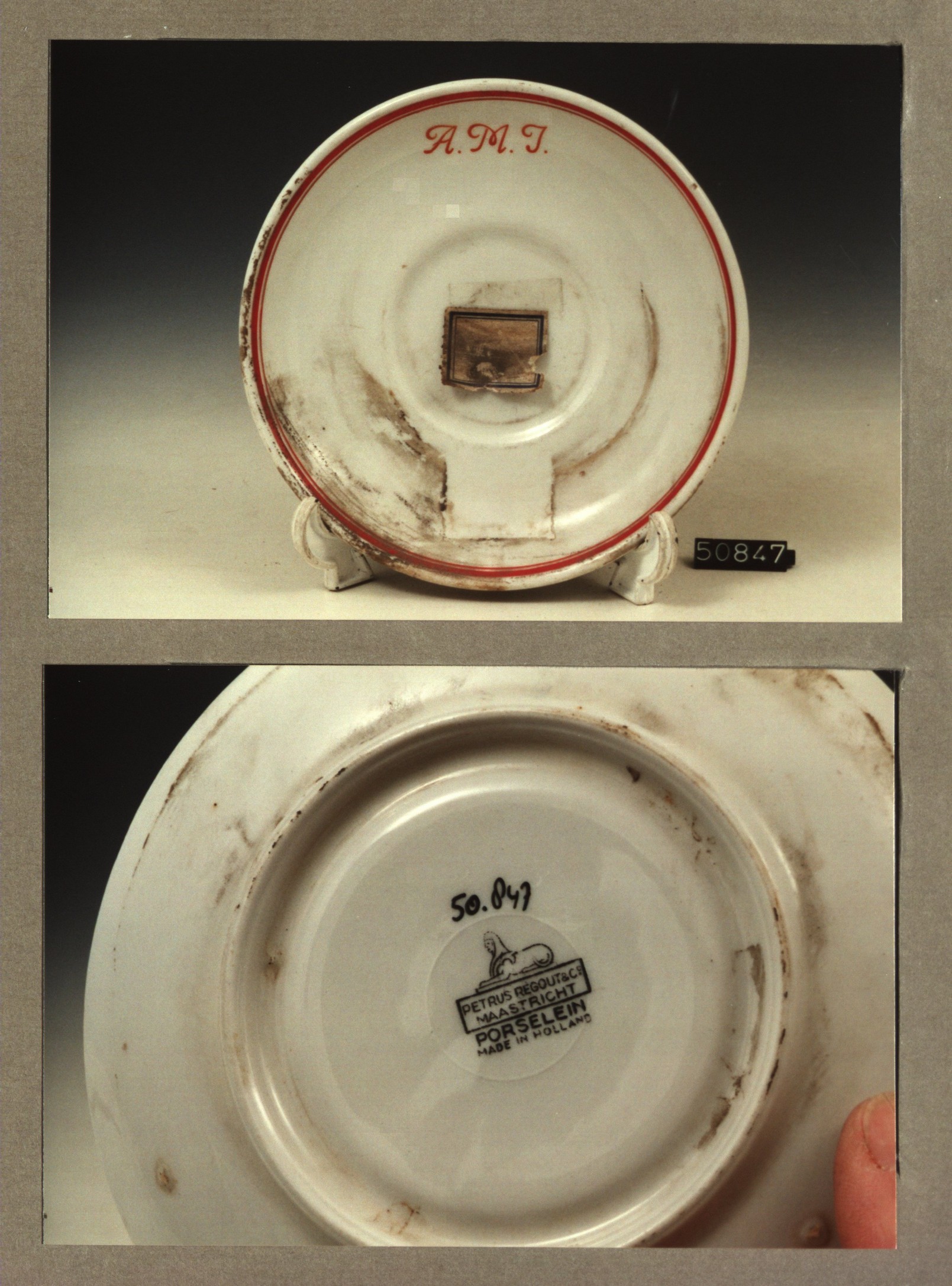 Schotel - plat, model P met decor A.M.J. polikliniek...