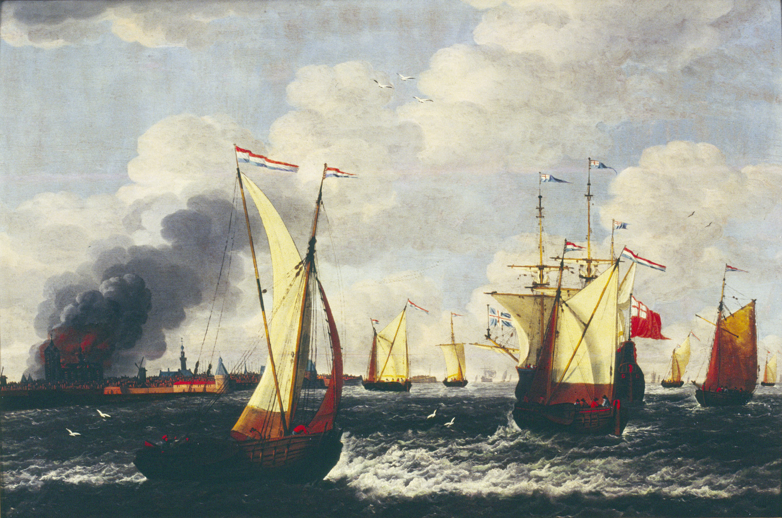 Gezicht op Veere met de brandende Grote Kerk (1686)