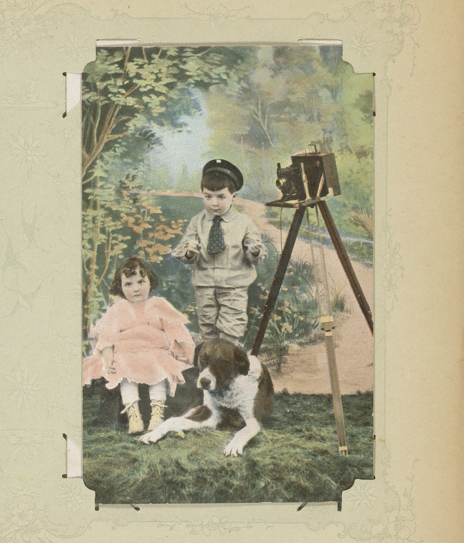 Jongen en meisje met een hond en camera