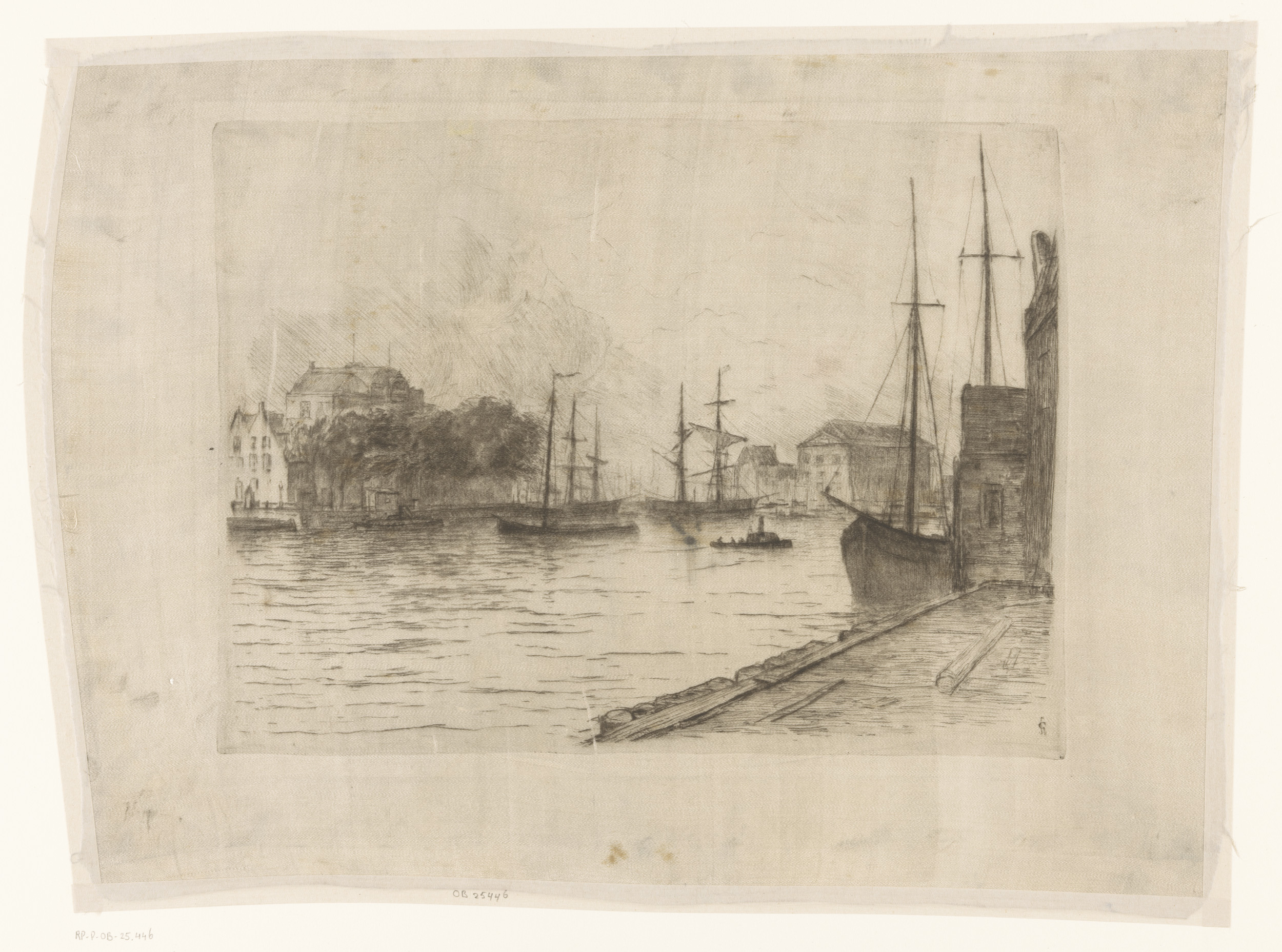 Gezicht op het Groothoofd te Dordrecht vanaf het wat...