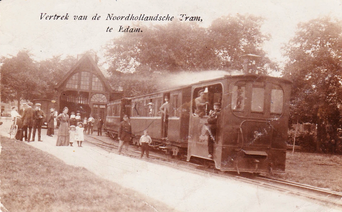 Vertrek met de Noordhollandsche Tram, te Edam.