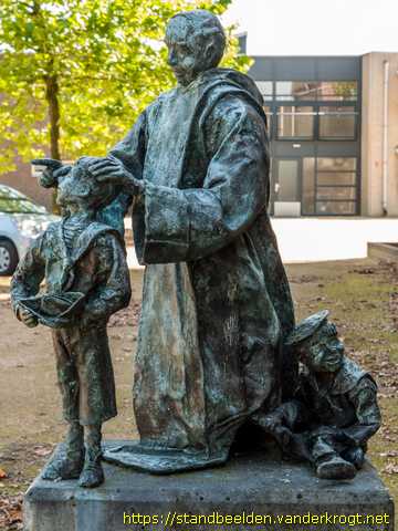 Pater met leerlingen