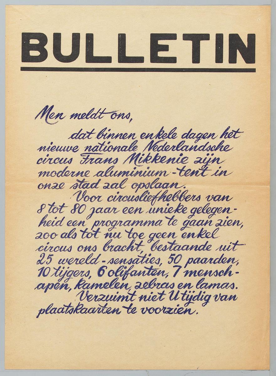 Circus Frans Mikkenie - bulletin