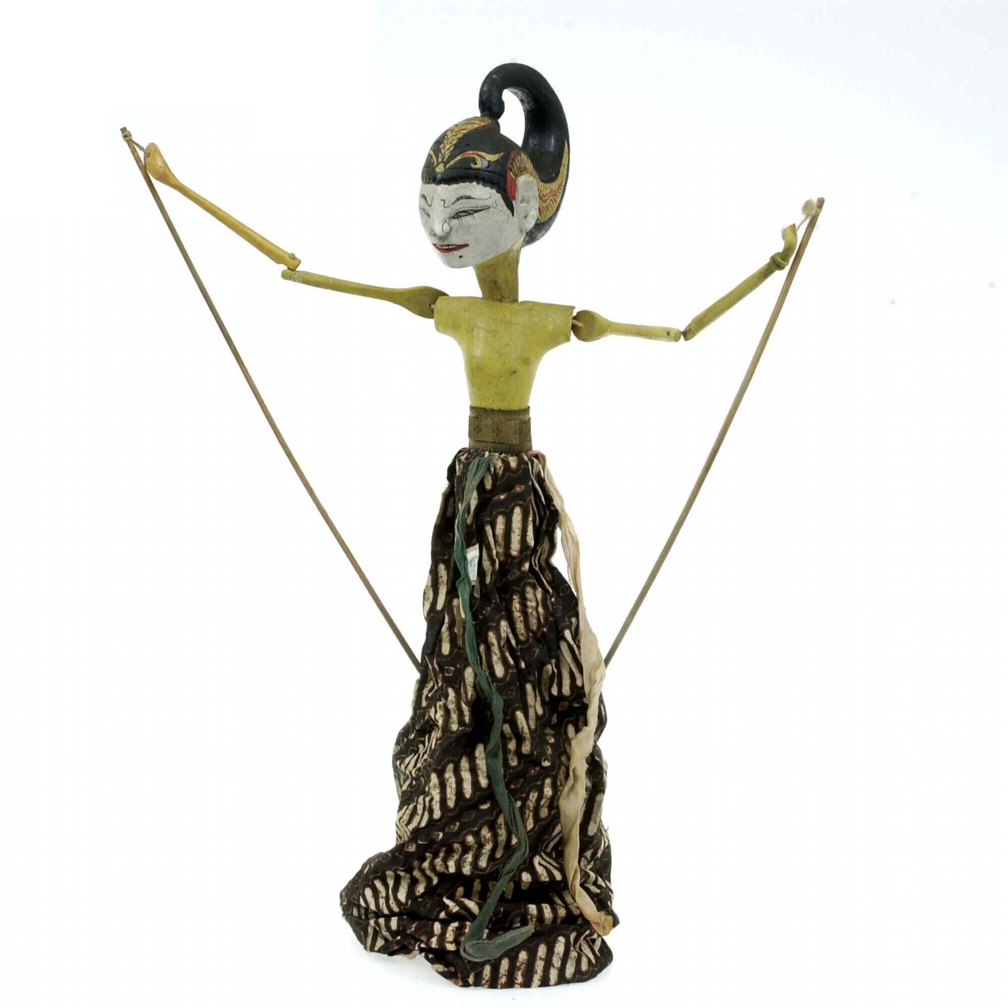 Houten wajang golèk pop, voorstellende Dewi Wahita