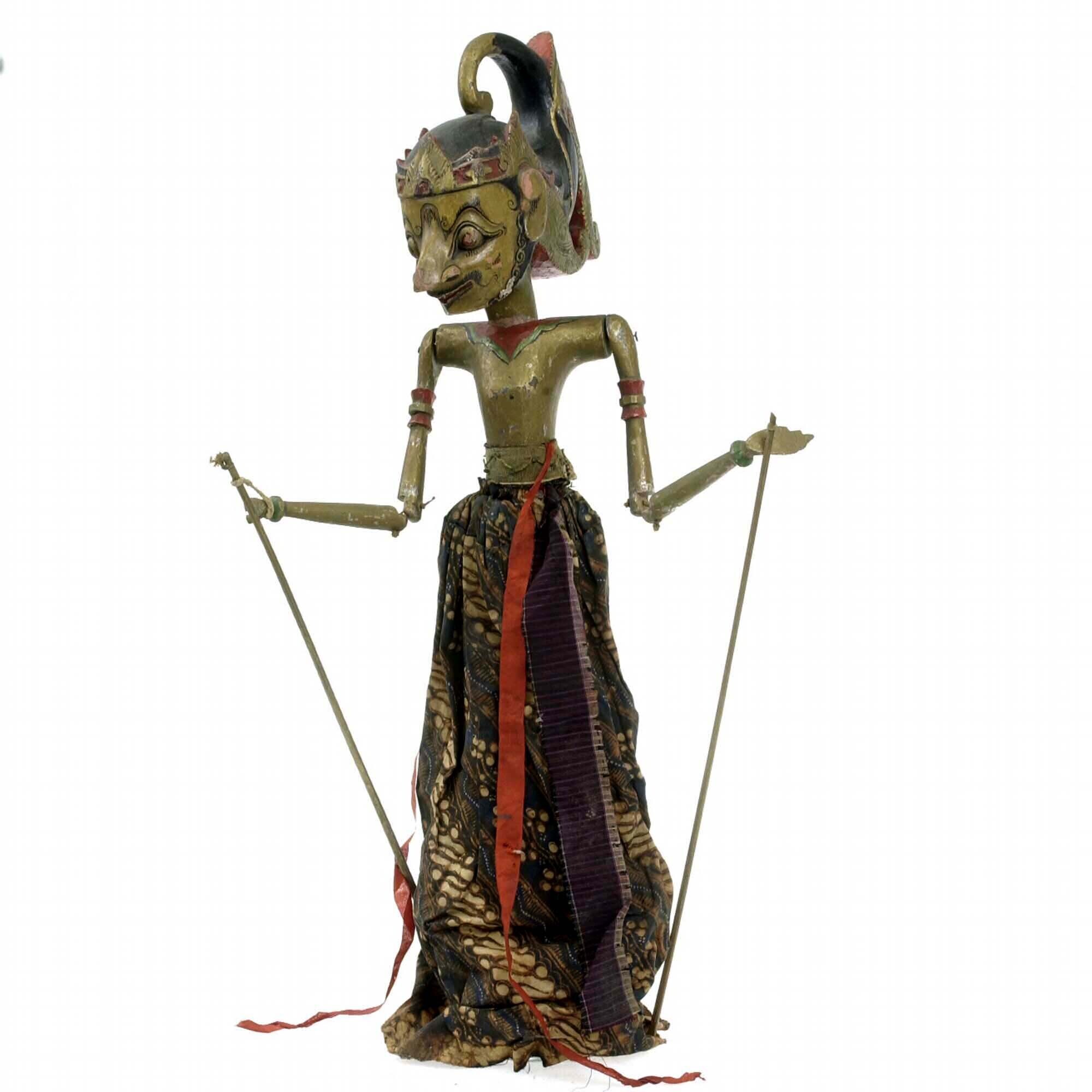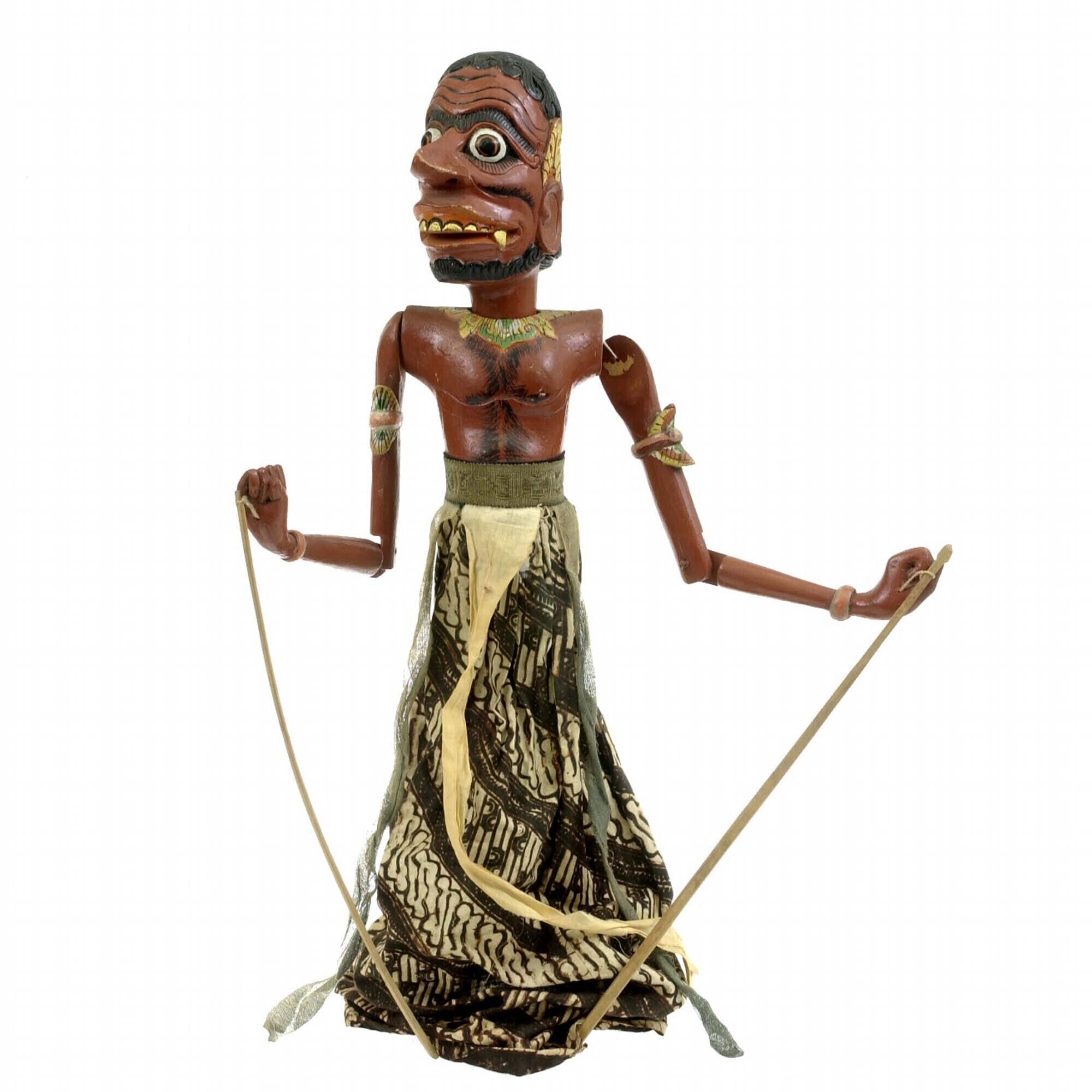 Houten wajangpop mogelijk voorstellende Musta of Ron...