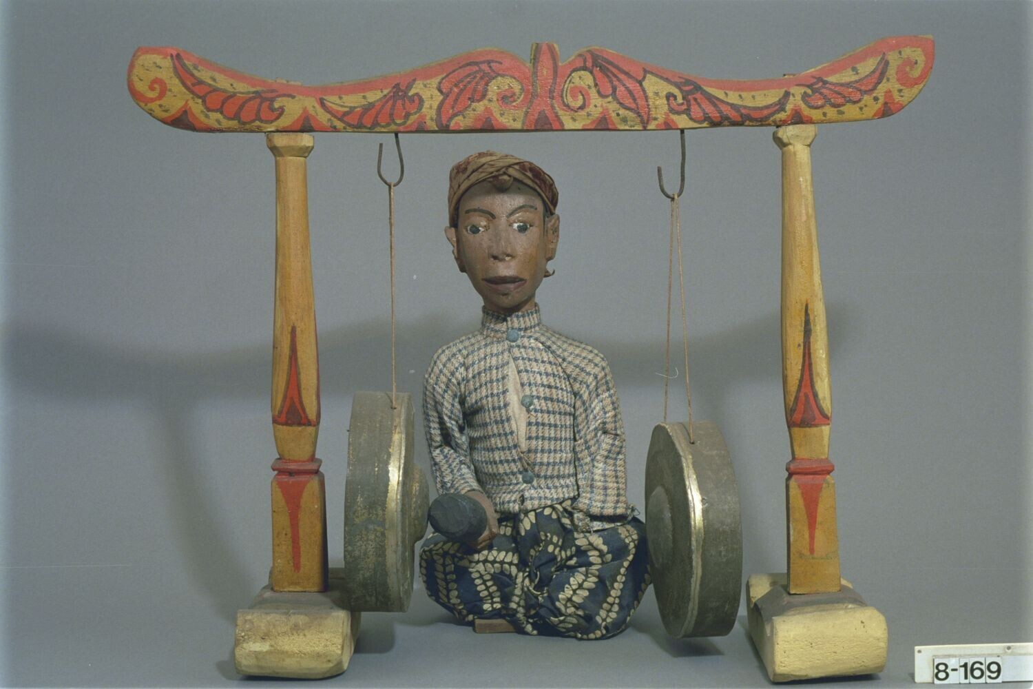 Beeld van hout van gongspeler