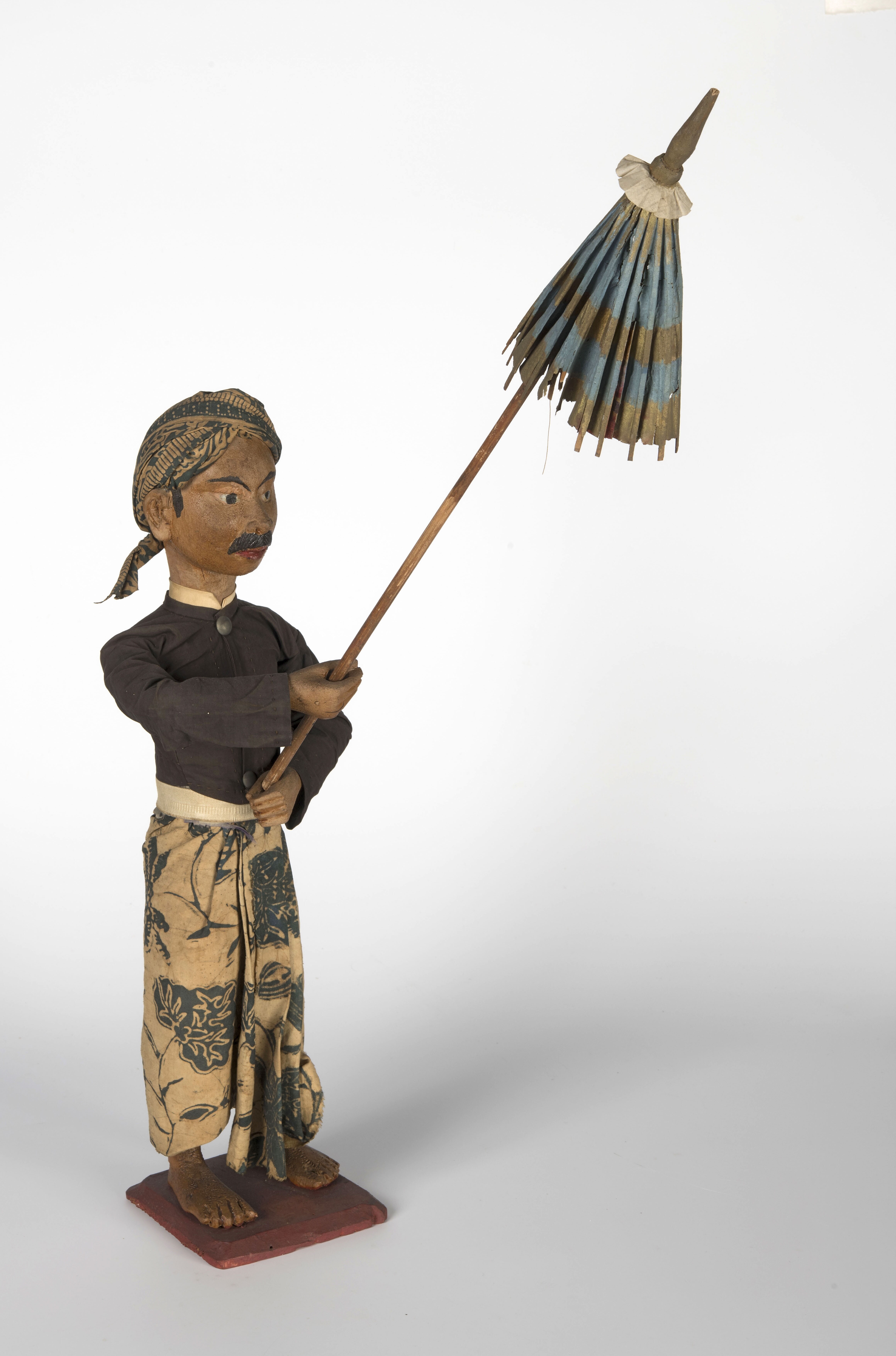 Houten pop, een parasoldrager voorstellend