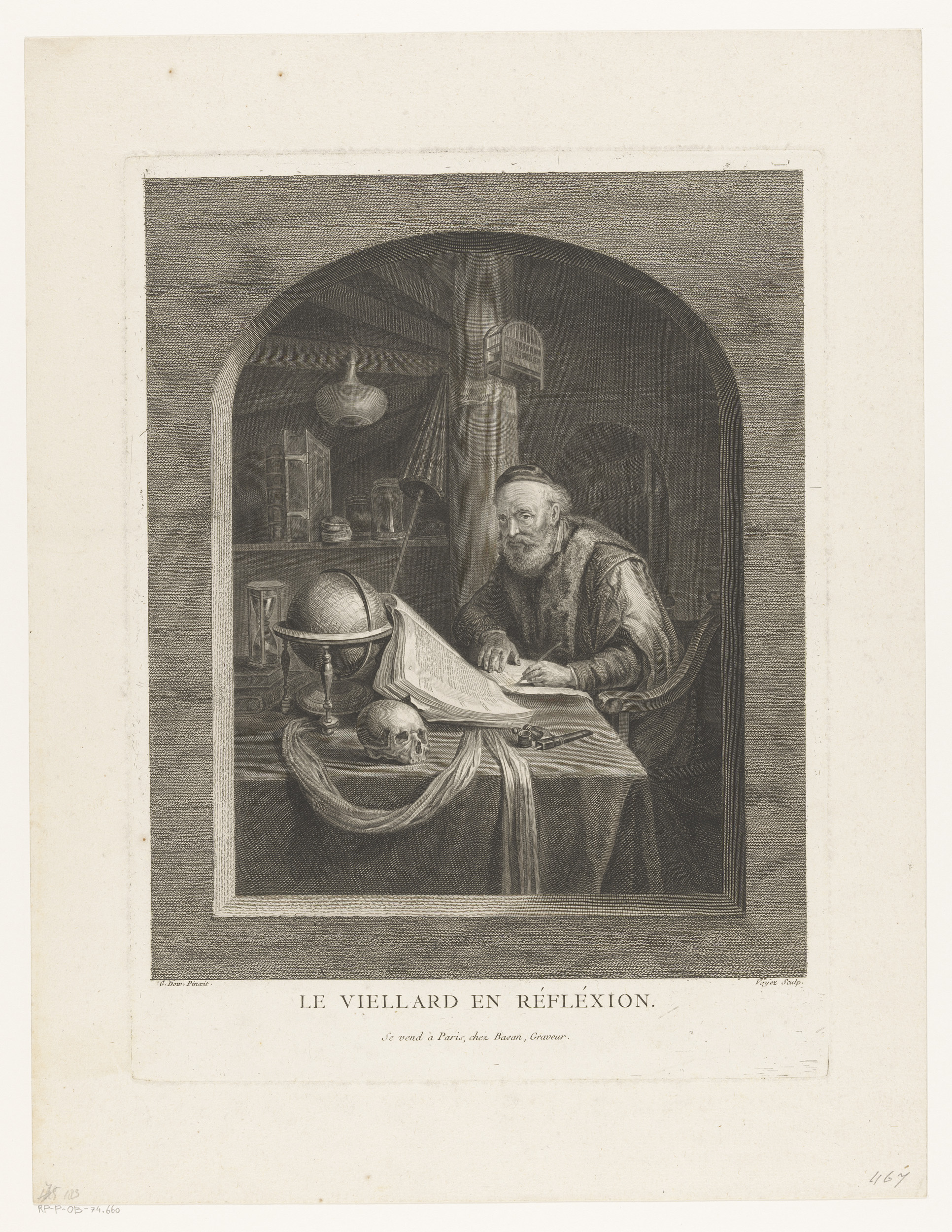Geleerde in zijn studeervertrek, schrijvend aan een ...