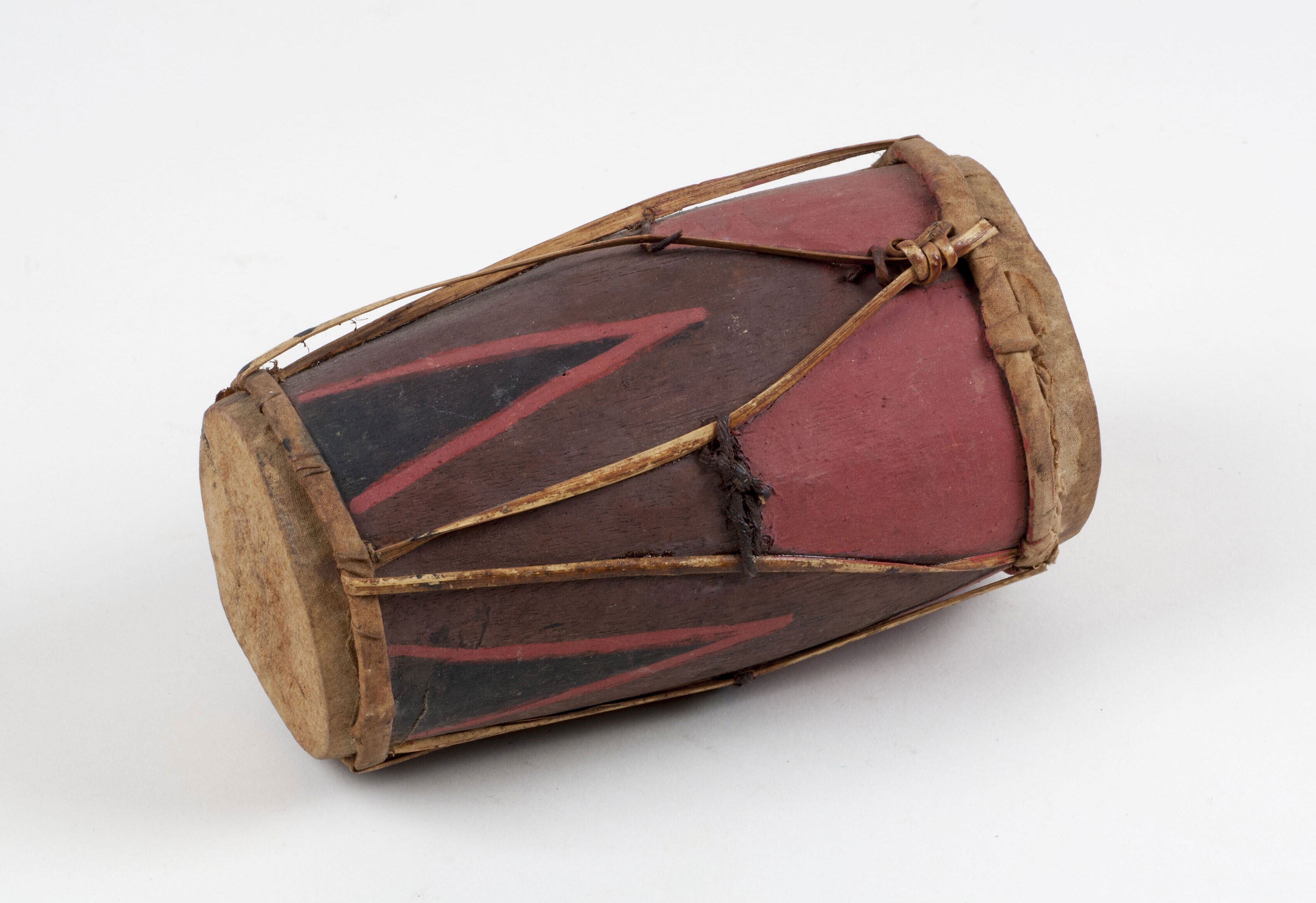 Model van een dubbelvellige tonvormige trom met stan...