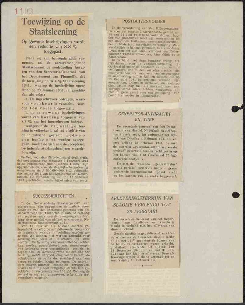 Verzameling krantenknipsels uit de periode 1940-1942