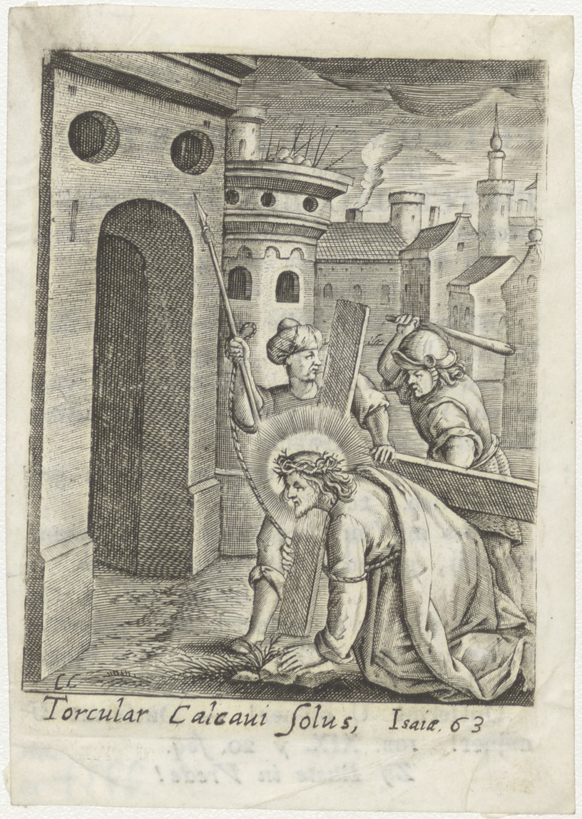 Val van Christus onder het kruis (Jes. 63), kz. Bid ...