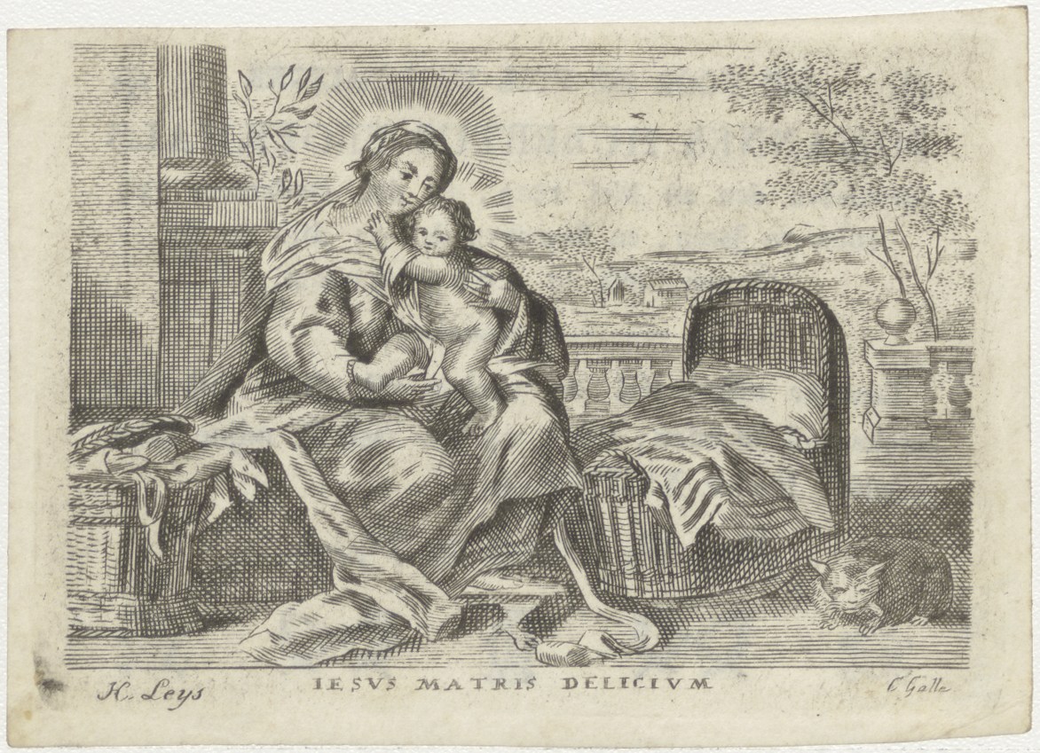 Maria met Christuskind in landschap, kz. Bid voor zi...