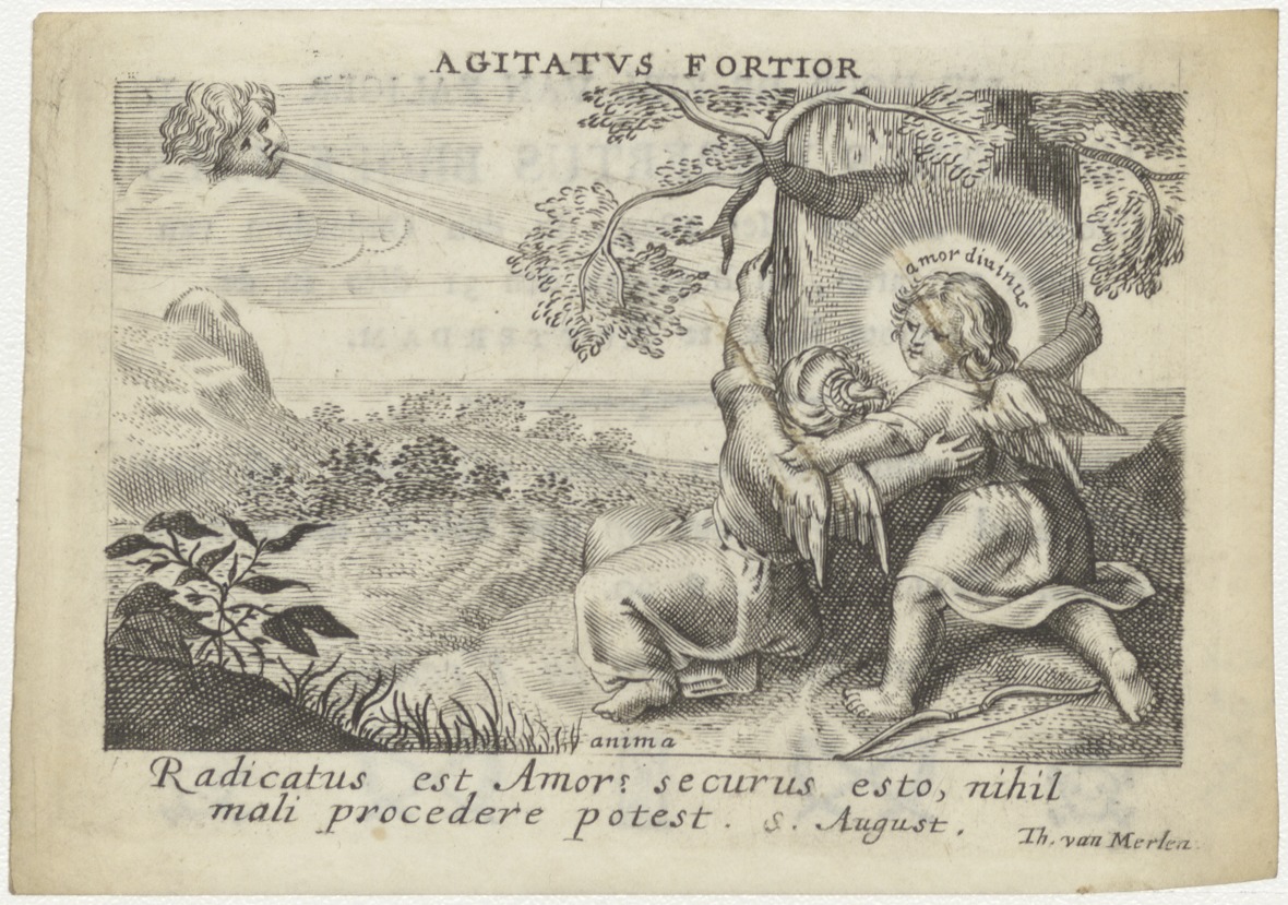 Amor divinus en Anima met wind, kz. Bid voor ziel Br...
